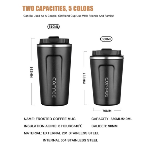 Stainless Steel Vacuum Insulated Coffee Mug - 380ML & 510ML | Keep Your Drink Hot or Cold for Hours