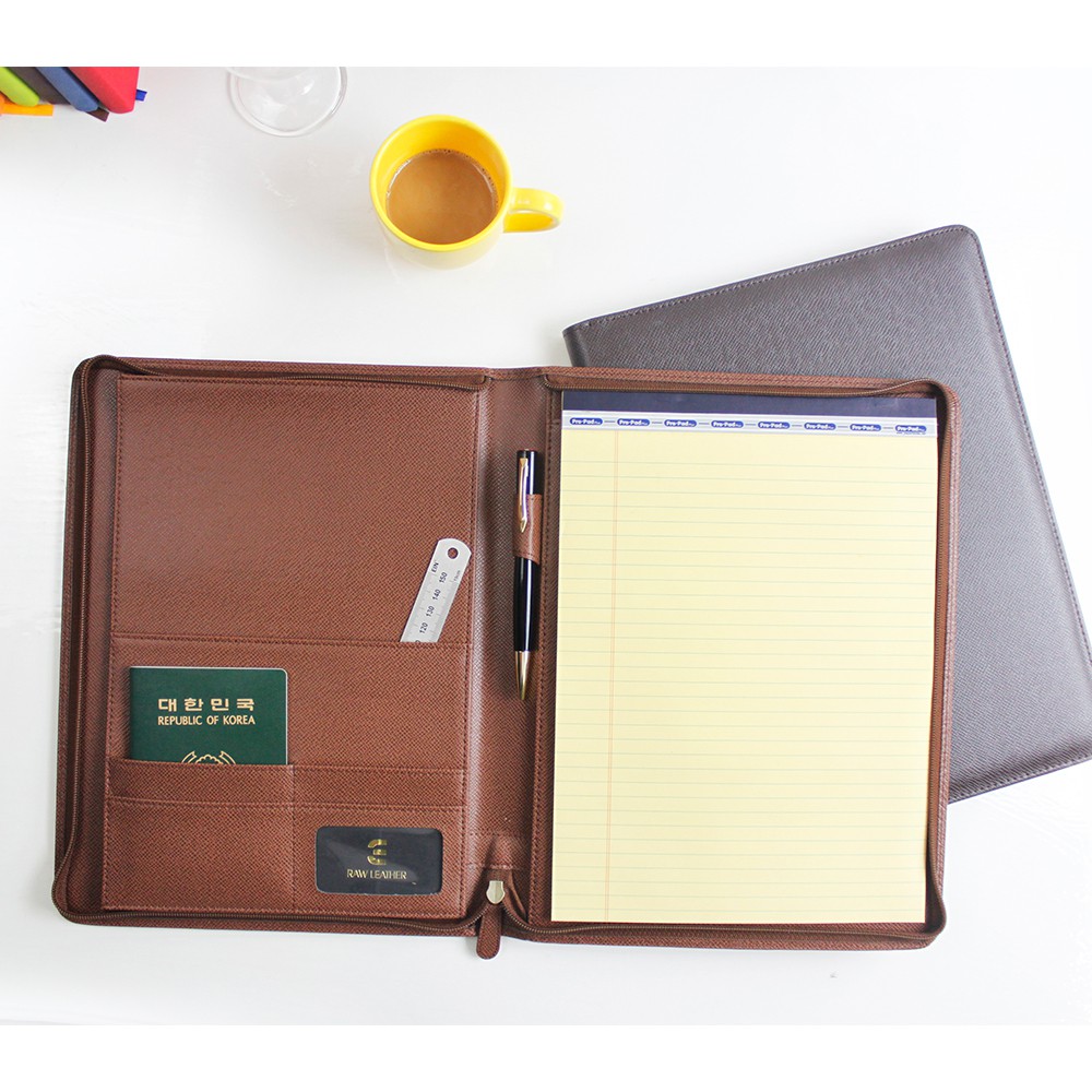 Zippered A4 Report Pad Advanced Synthetic Leather Handmade Pad Business Padfolio Notepad A4 Size Memo Organizer Folder