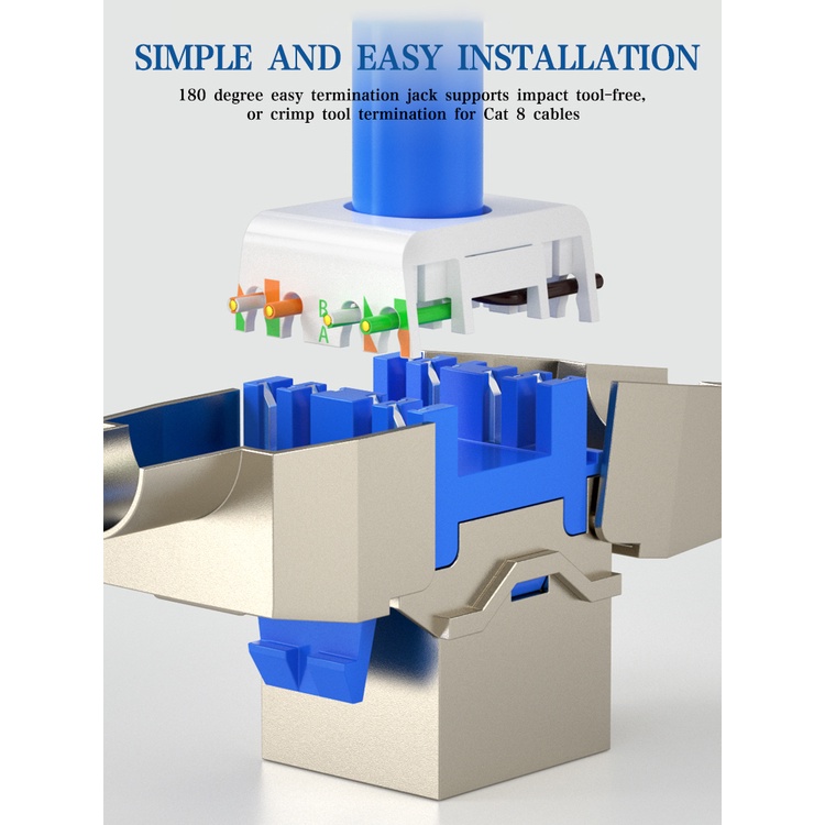 ZoeRax 1PCS Cat6a Cat7 Cat8 Keystone Jack, RJ45 STP Tool-Less Type Zinc Alloy Module Shielded Keystone Jack Adapter 40 Gigabit