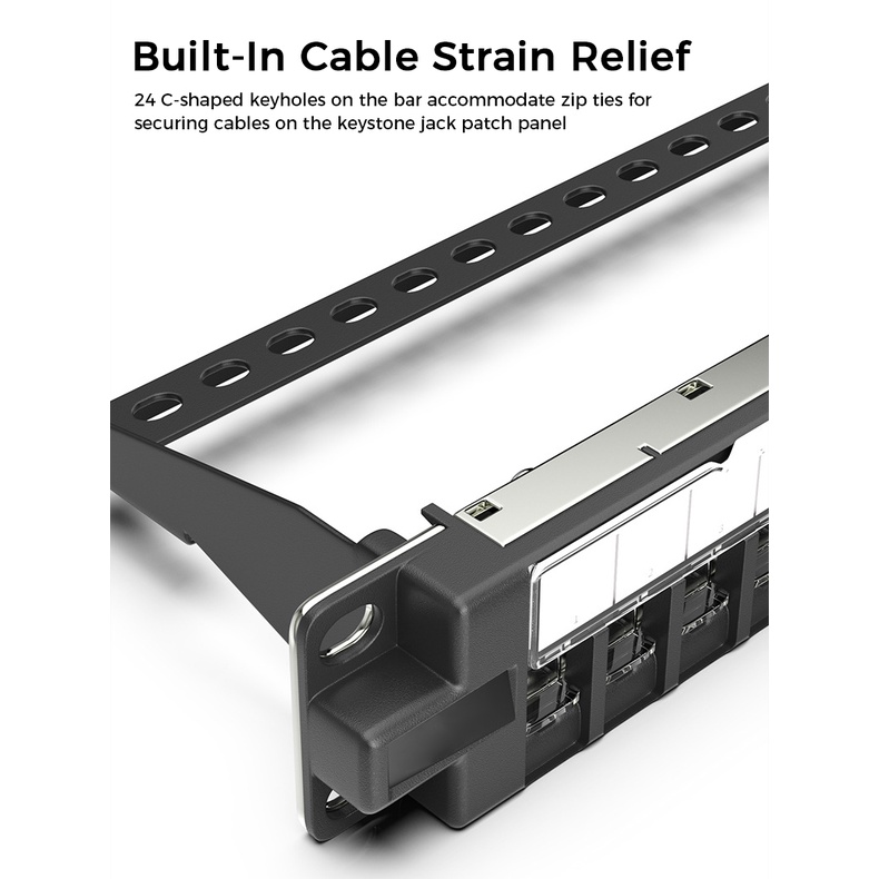 ZoeRax Rackmount or Wall Mount 1U 24 Port Keystone Patch Panel with Dustproof Door 19-inch Blank Patch Panel for Keystone Jacks