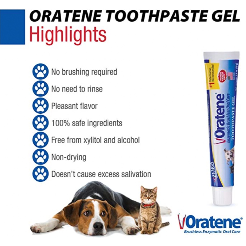 Zymox Oratene Enzymatic Brushless Oral Care Toothpaste Gel 70g for Pets Dogs Cats Oral Care Dental Gel Toothpaste