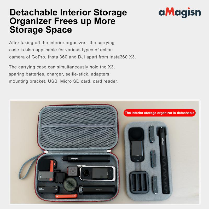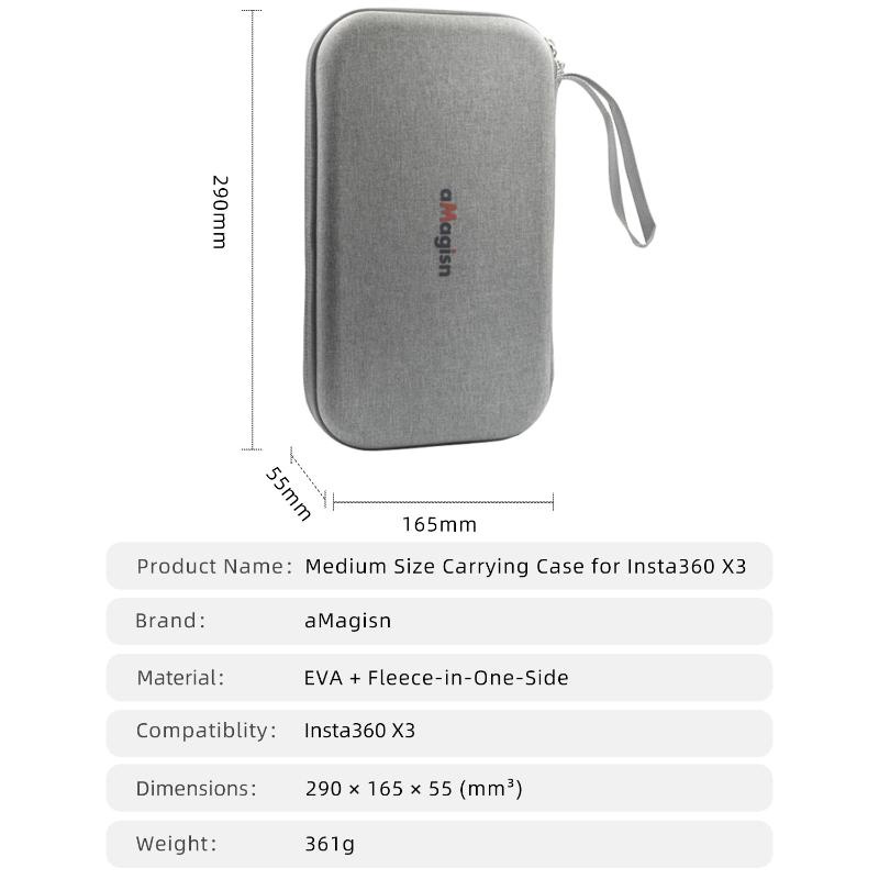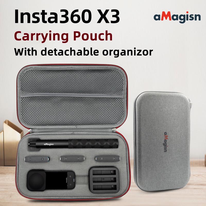 aMagisn Insta360 X3 Storage Bag 360 X3 Liner Case 360 X3 Accessories Detachable EVA Lining Pouch Double Zipper Medium Size