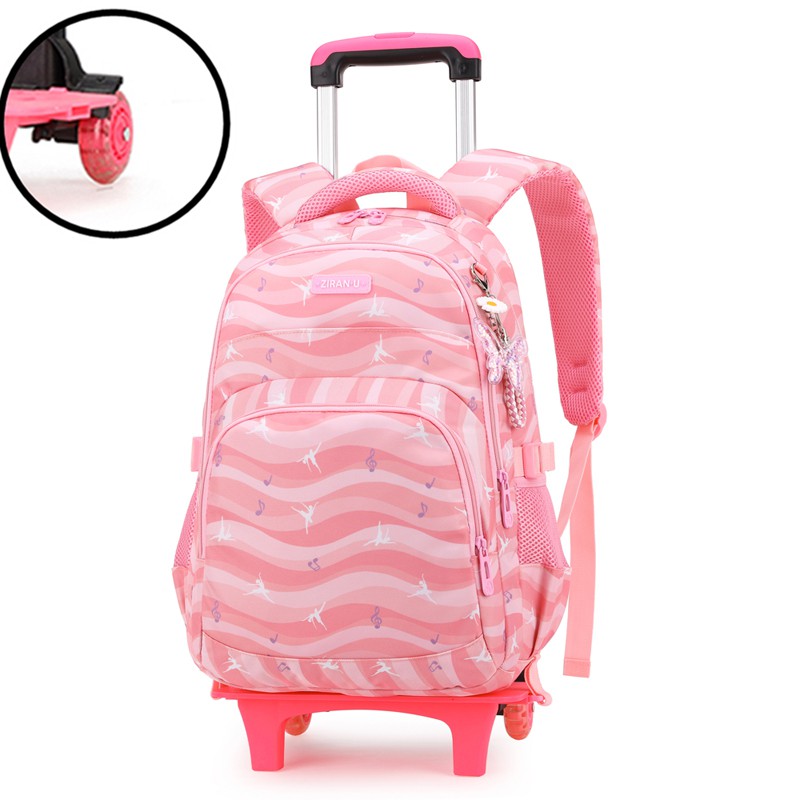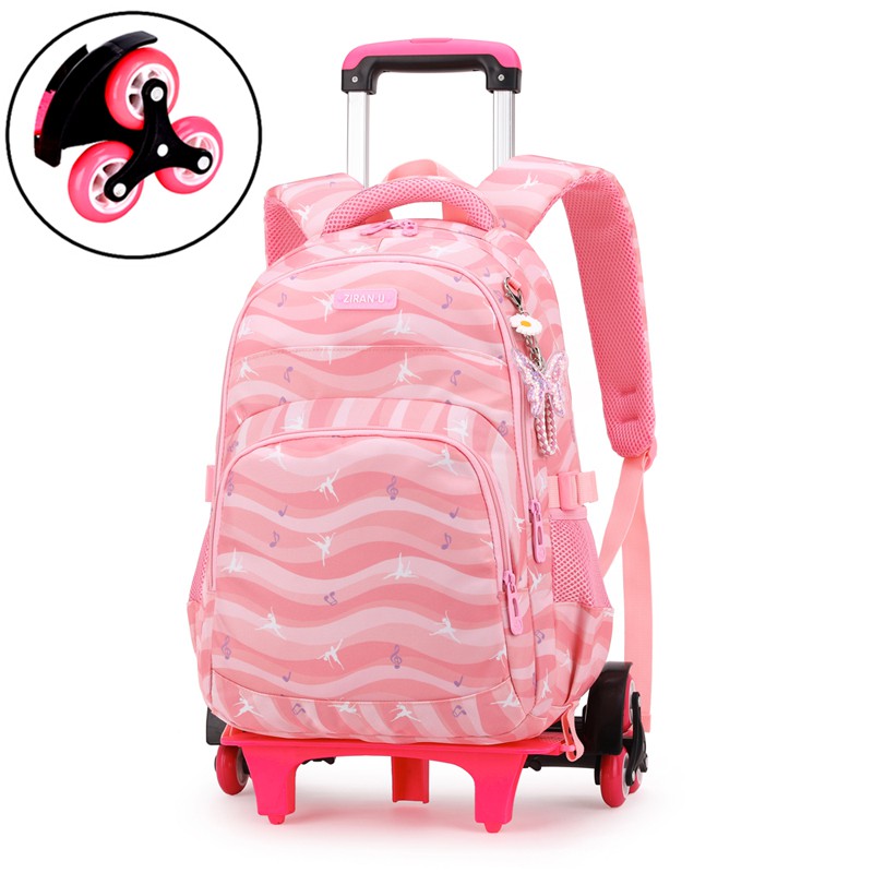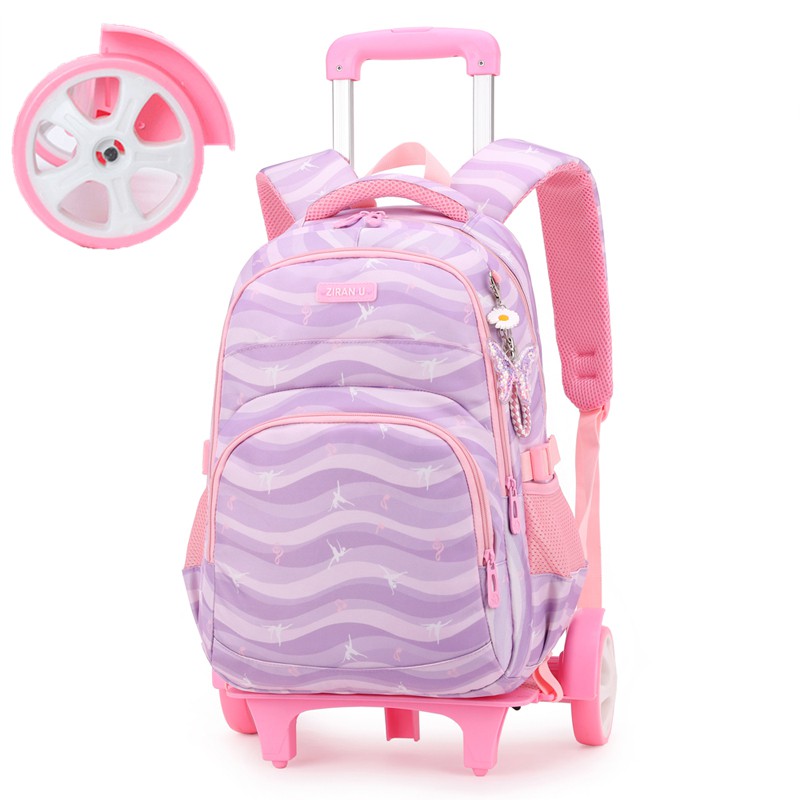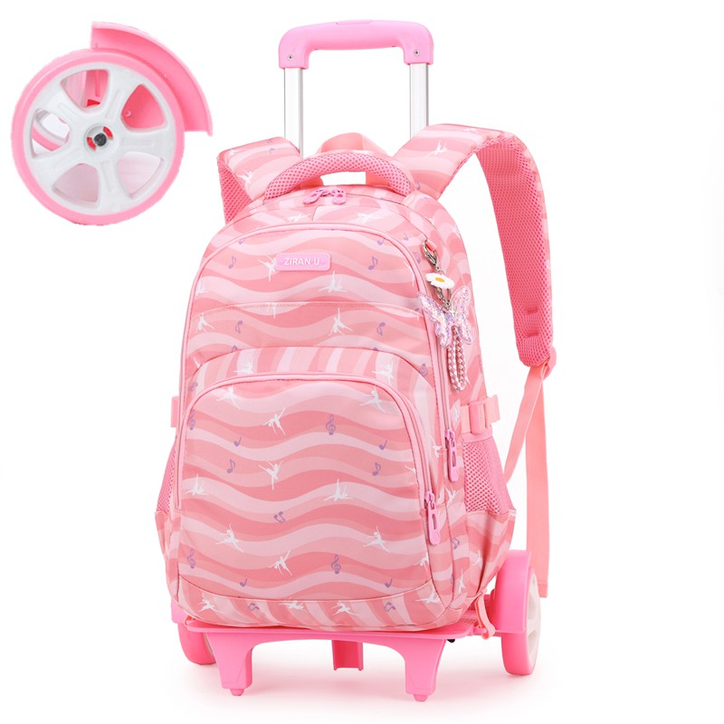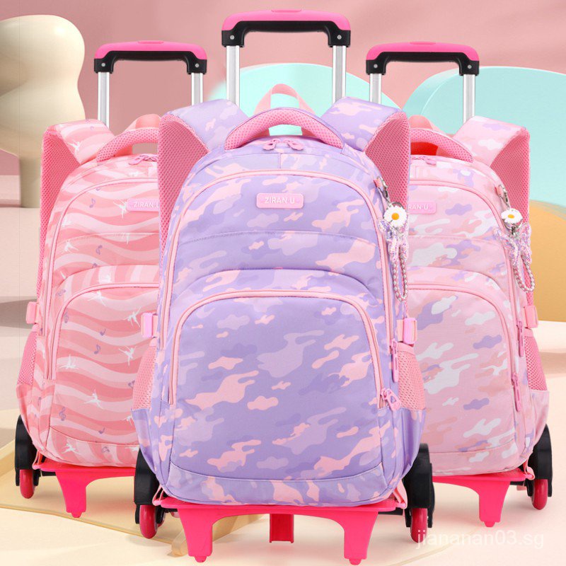 aTrolley School Bag Staircase Primary Secondary School Backpack With Wheels Staircase Waterproof Water Resist Stair Climbing Pupils Bag Large Space Capacity Girl Removable
