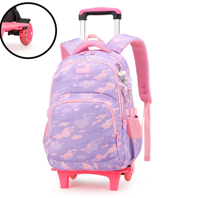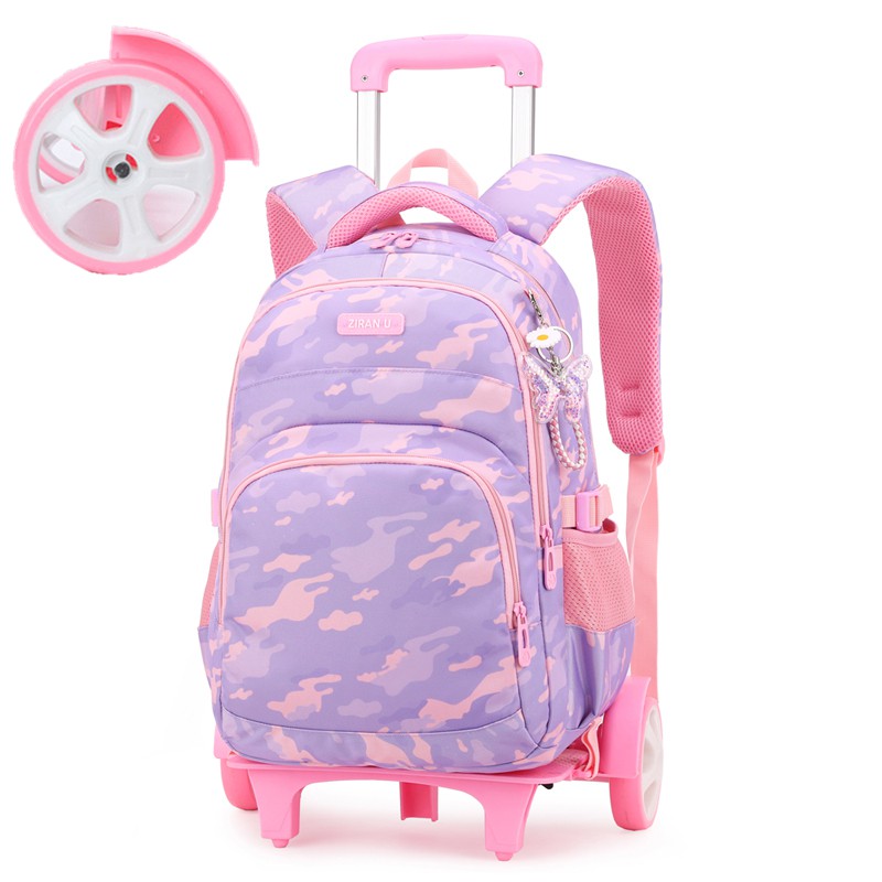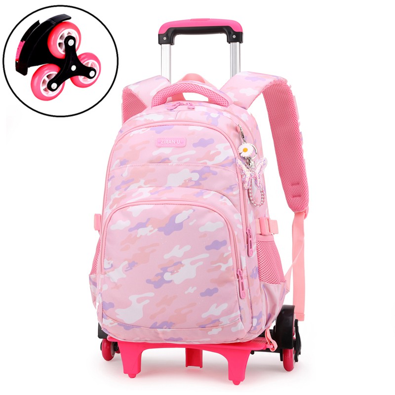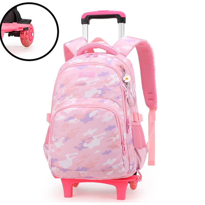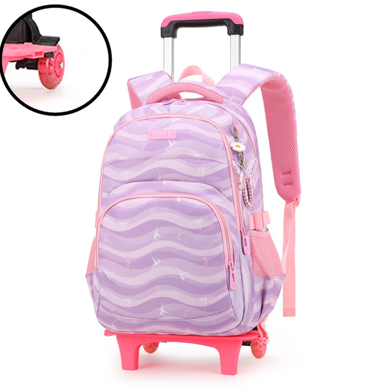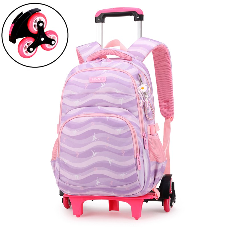 aTrolley School Bag Staircase Primary Secondary School Backpack With Wheels Staircase Waterproof Water Resist Stair Climbing Pupils Bag Large Space Capacity Girl Removable