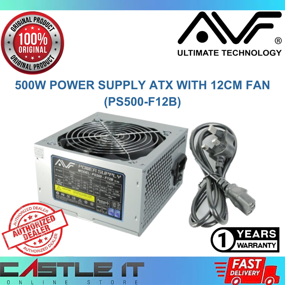 AVF 500W PS500-F12B ATX Power Supply with 12cm Fan Bulk