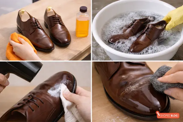 In Singapore’s humid climate, mould can form if shoes are stored damp. Act quickly. Take shoes outdoors and wipe with a cloth lightly dampened in equal parts white vinegar and water to kill spores. Let them air-dry in a shaded, ventilated area, then apply conditioner to restore moisture. Prevent recurrence by storing shoes dry, with good airflow or moisture absorbers.