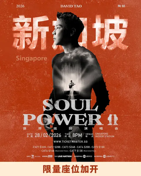 Mandopop icon David Tao returns to Singapore with SOUL POWER II, a long-awaited continuation of his legendary concert series. Known for blending R&B, soul and rock with razor-sharp live arrangements, Tao’s shows are as musically rich as they are emotionally charged. Expect powerful vocals, extended jam sessions and reworked classics that remind fans why he remains one of Mandopop’s most influential performers — a must-see upcoming concert in Singapore 2026.