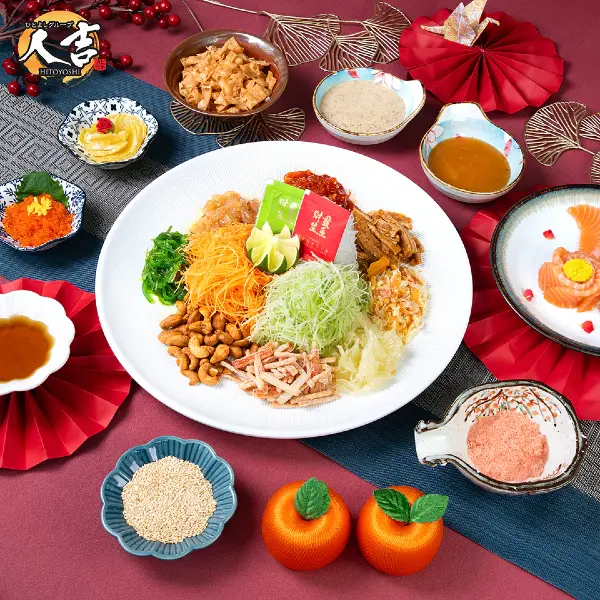 Hitoyoshi also offers pricier editions – e.g. Prosperity Yu Sheng ($98.80) and Premium Yu Sheng ($128.80) that include luxe items like scallops, hamachi and even chutoro (fatty tuna). But if all you need is good salmon, the basic set is fantastic value.