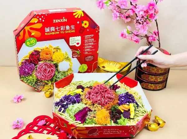 Health-conscious families will love this organic yu sheng kit. Sourced from organic farms by the brand Simply Natural, it features a “rainbow” of seven-coloured ingredients free from pesticides. The kit includes organic carrots, ginger, beetroot noodles and an all-natural plum sauce. There are also no artificial colours – the vibrant hues come from real food like beetroot and purple cabbage. While it doesn’t come with raw fish (you can add your own sashimi or go vegetarian), it does include crackers and seasonings. With its clean ingredients and natural colours, tossing yu sheng feels especially wholesome, making this a guilt-free way to enjoy the festive tradition.