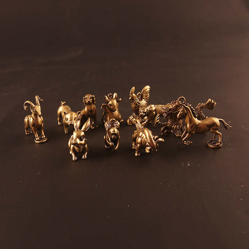 brass metal key chain to hang the rat ox tiger rabbit Chinese zodiac snake horses sheep monkey chicken dogs pigs