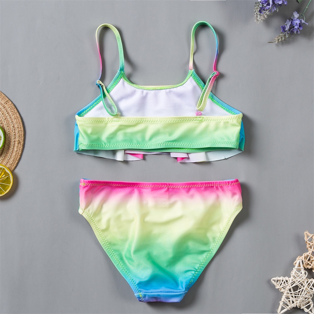 children swimwear 6-16years girls bathing suit rainbow ruffle design kids girls bikini swimwear set
