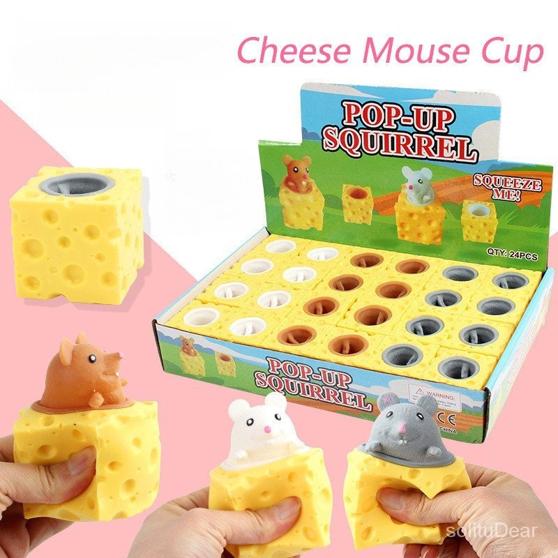 fidget toys Funny Cheese Block Squeeze Toy Children Cartoon Cute Stress-relieving Toys Decompression Cheese Mouse Cup Pop up Kids Anti-stress