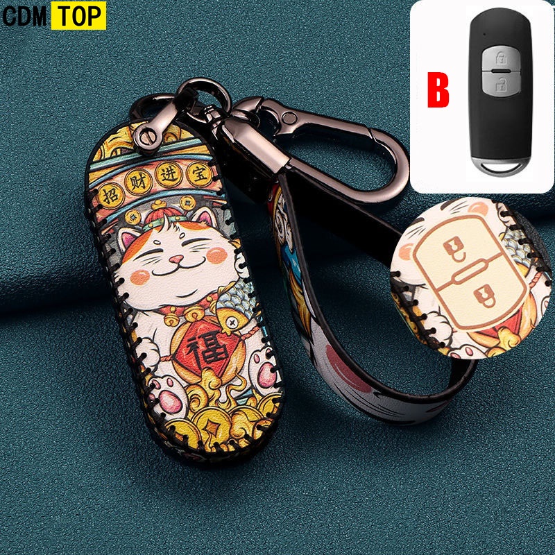 for Mazda car key cover Angkesaila Mazda 3 2 6 Axela Atenza CX-5/CX-4/CX-3/CX-7/CX8/CX-9 car national tide leather key bag buckle accessories