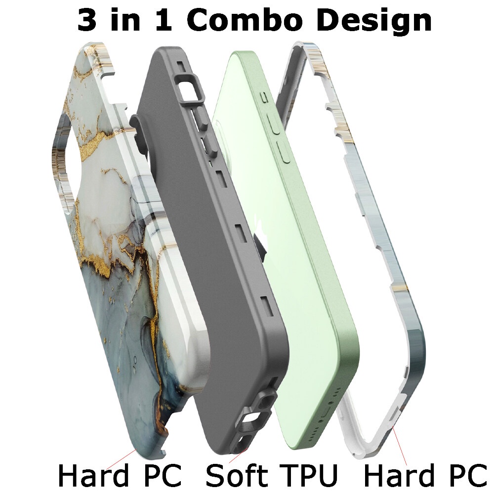 for iPhone 15 Pro Max Case, Premium Marble Pattern 3 in 1 Heavy Duty Shockproof Full Body Rugged Hard PC+Soft Silicone Cover for iPhone 13 Pro Max/14 Plus/12 Pro Max/14 Pro Max