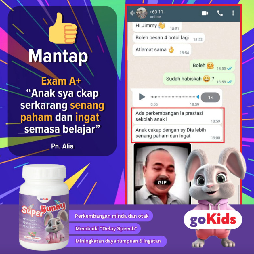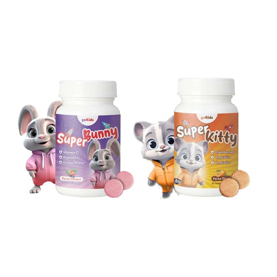 goKids Super Bunny Super Kitty Probiotics Kids Immune Booster Multivitamin Prebiotik Kanak-Kanak Probiotik