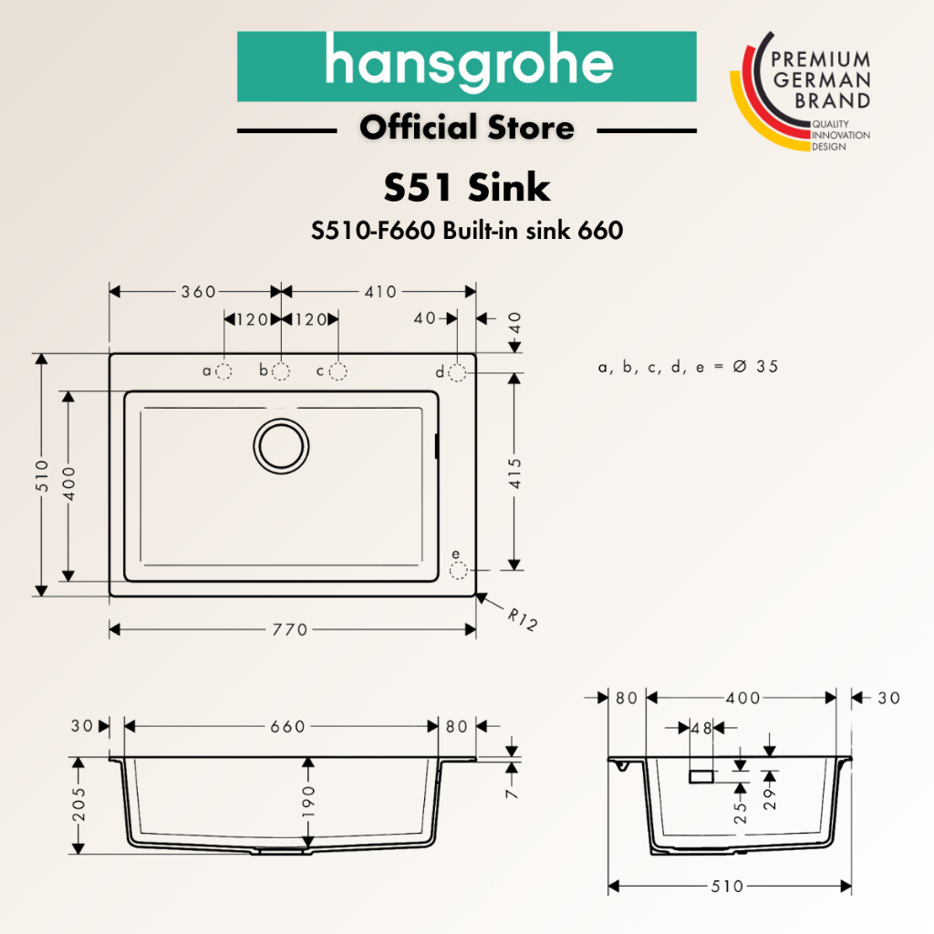 hansgrohe kitchen sink S510-F660 - topmount granite sink 660mm, waste set not included, in graphite black
