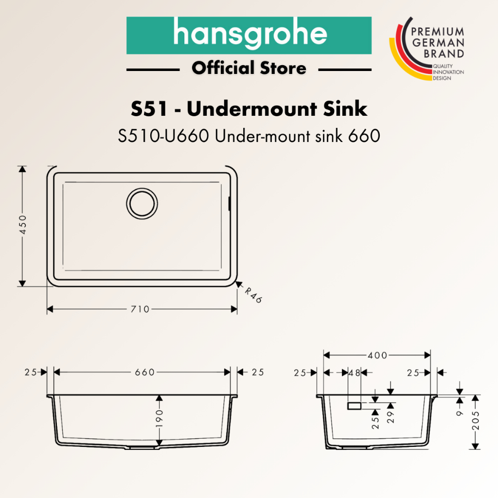 hansgrohe kitchen sink S510-F660 - undermount granite sink 660mm, waste set not included, in graphite black