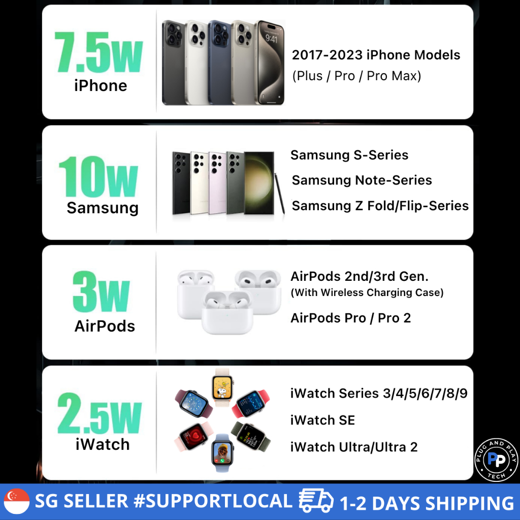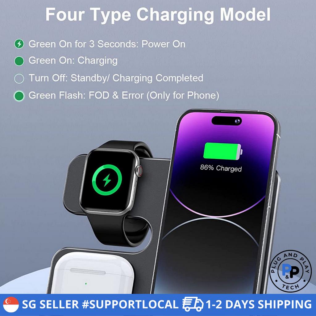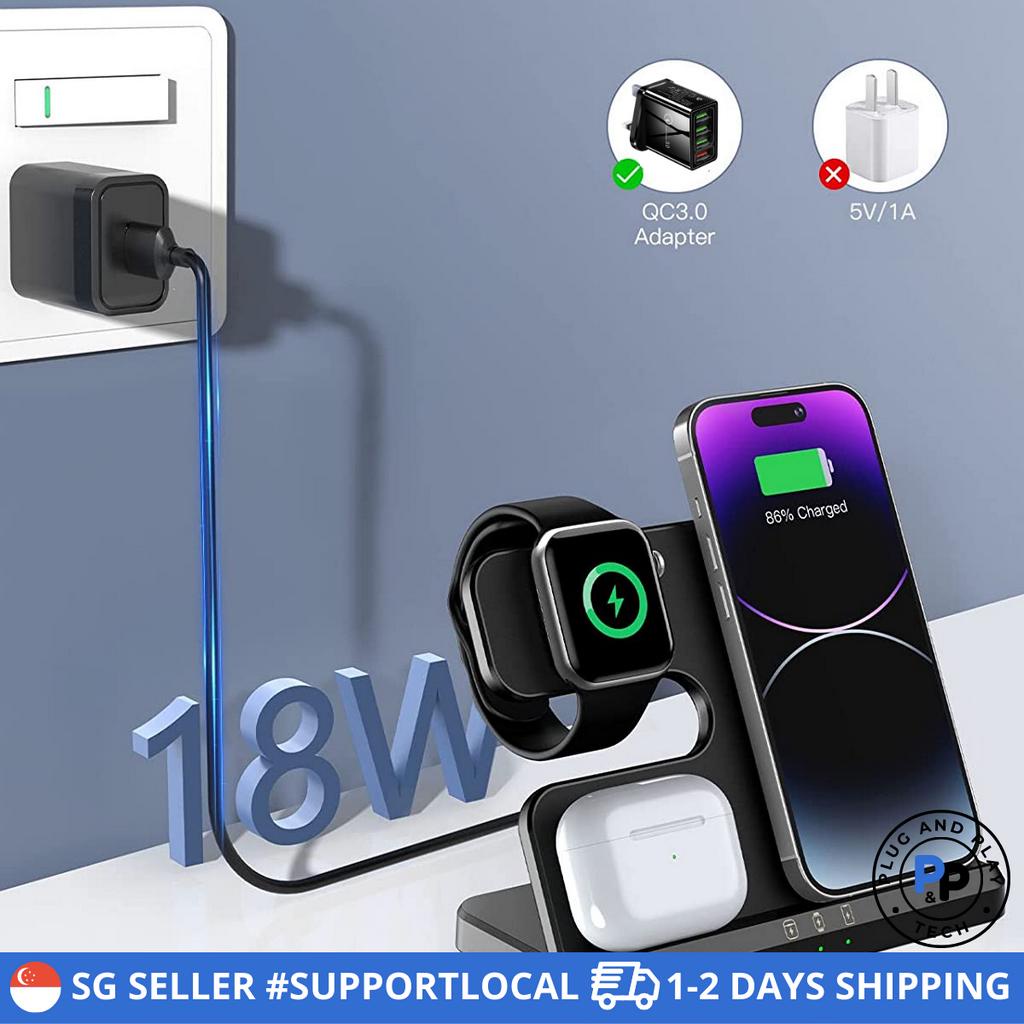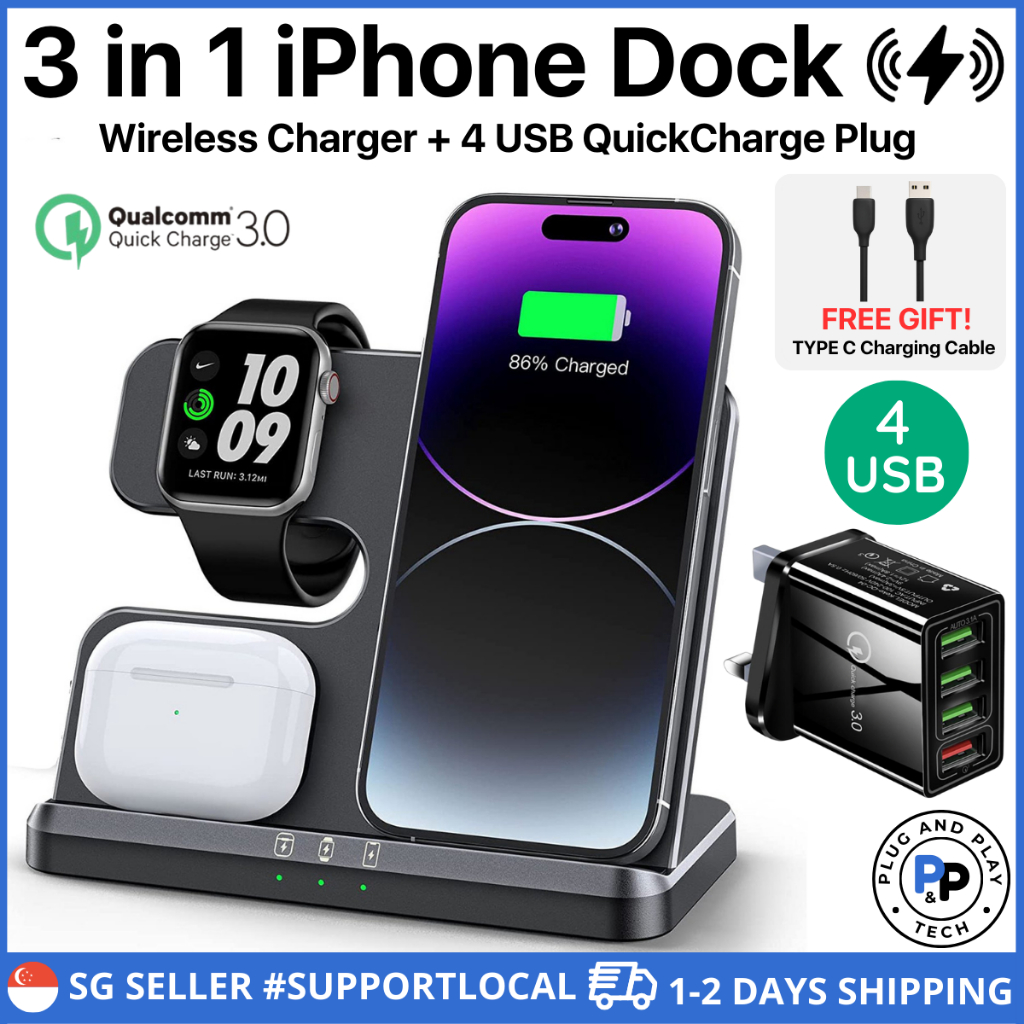 iPhone 15 Wireless Charger 3 in 1 Dock For iPhone Airpods iWatch | Free Cable | QC 3.0 Magnetic 15W Fast Qi Enabled