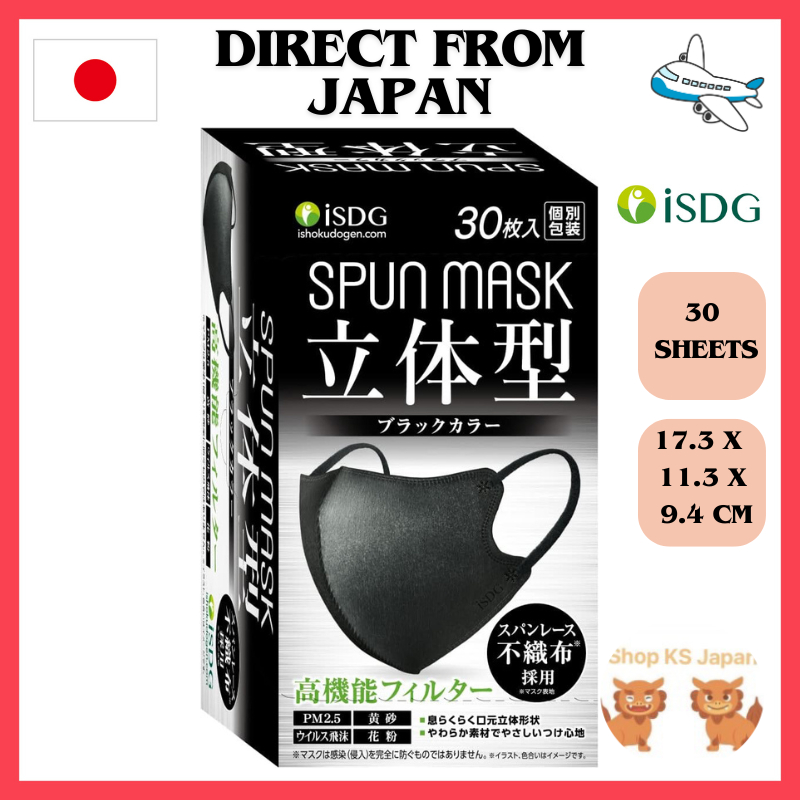 iSDG iyoshoku-dogen.com 3D spun lace non-woven color mask SPUN MASK, individually wrapped, black, 30 masks.[Direct From Japan]