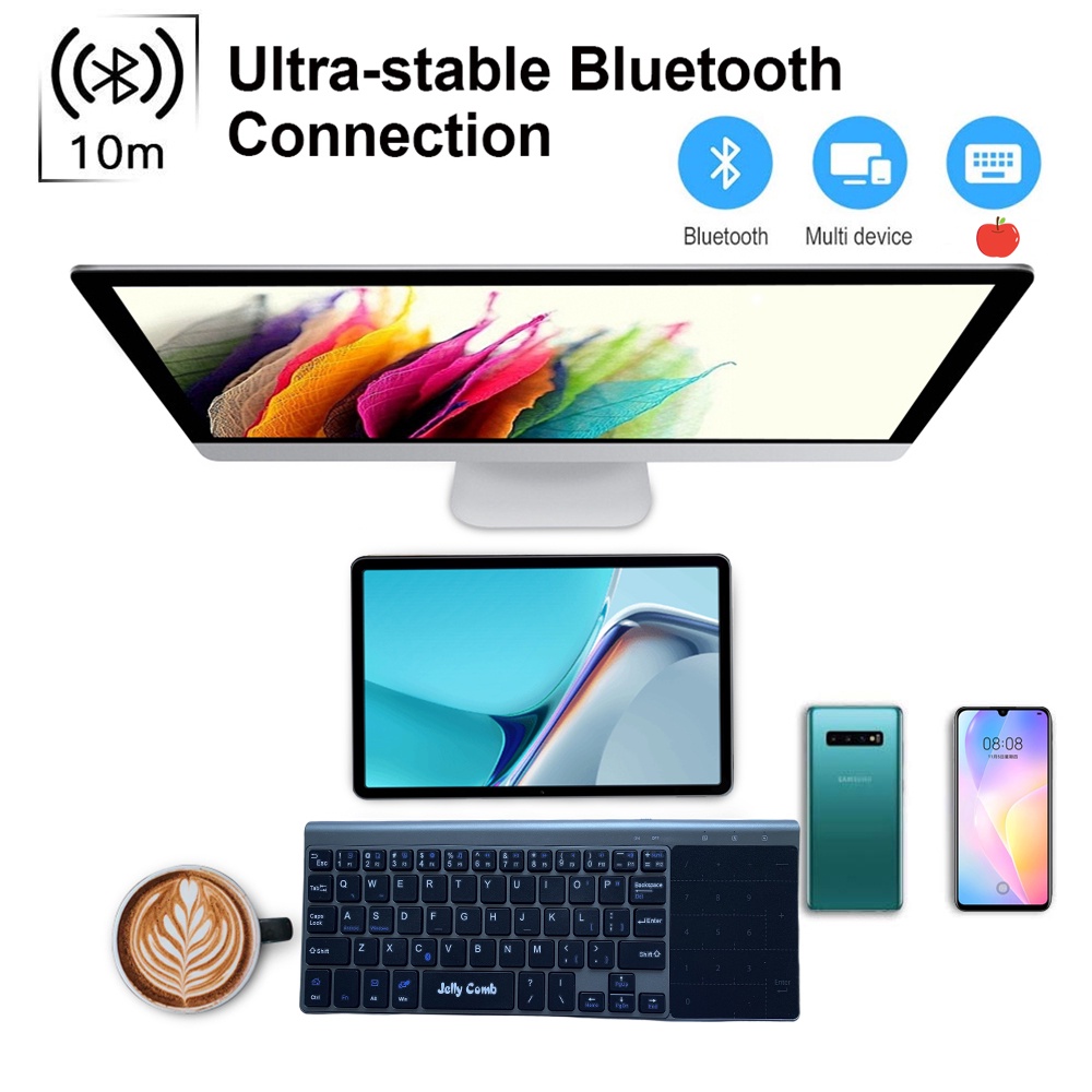 Jomaa Ultra Slim Wireless Keyboard Bluetooth/2.4G for Tablet Smart TV Smartphone Laptop Keyboard with Touchpad Number Keys