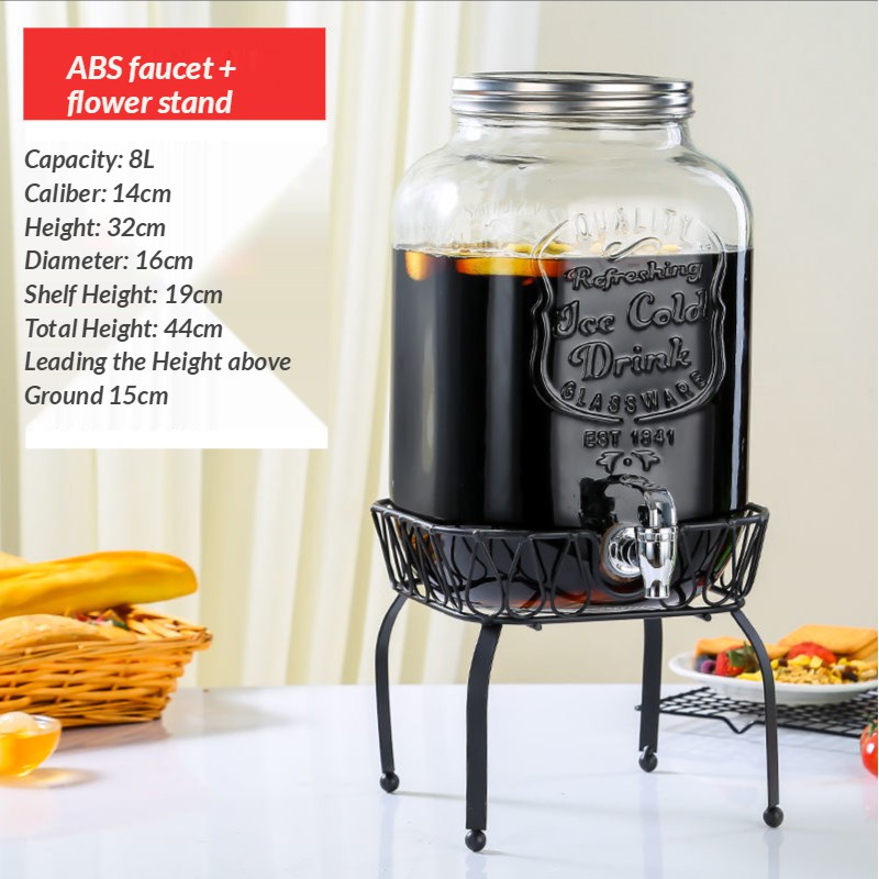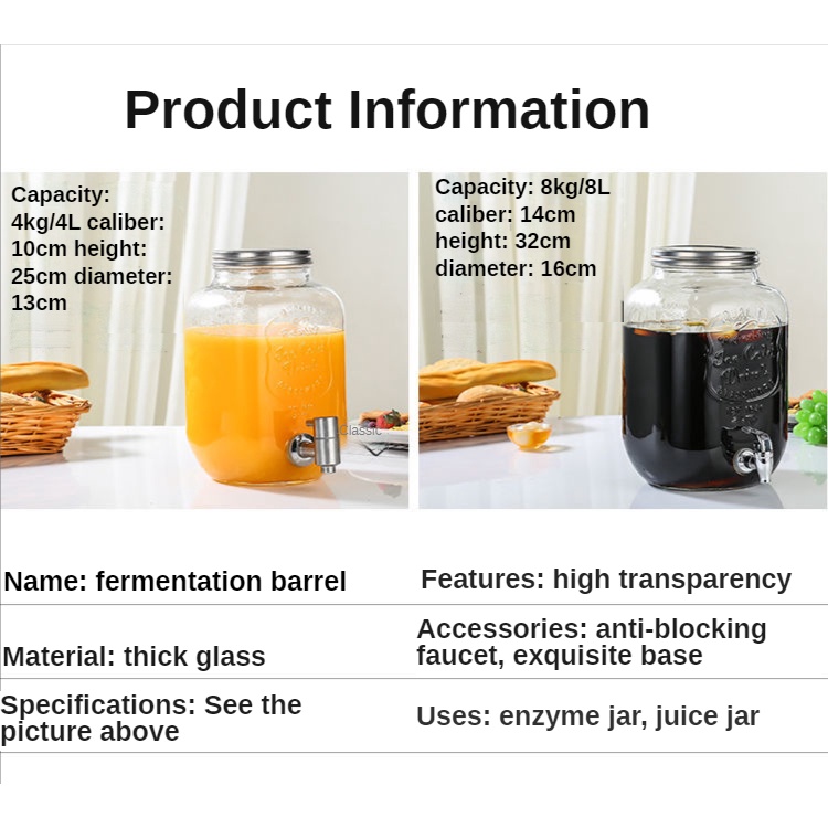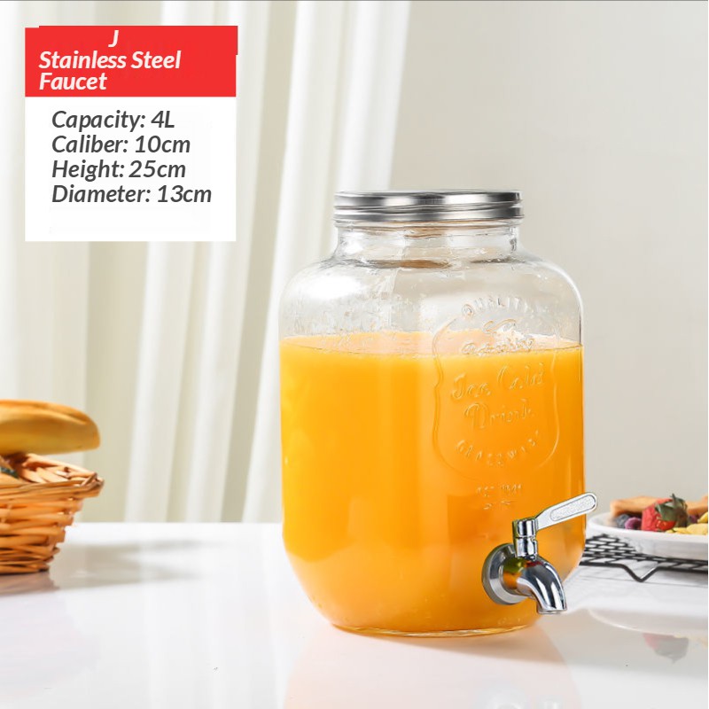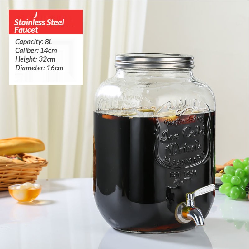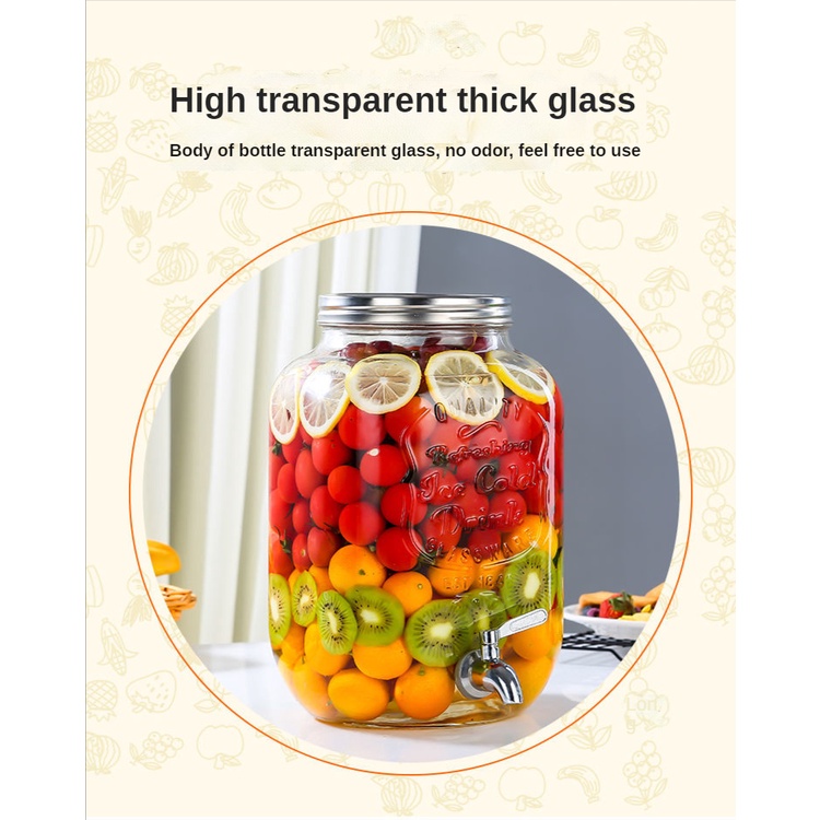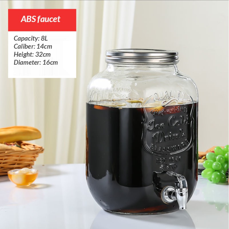 jug water dispenser water jug juice dispenser Glass Wine Fermentation Jar with Faucet Table Cold Water Beverage Barrel Lemon Juice Jar Coke Bucket Fruit Tea Barrel Container