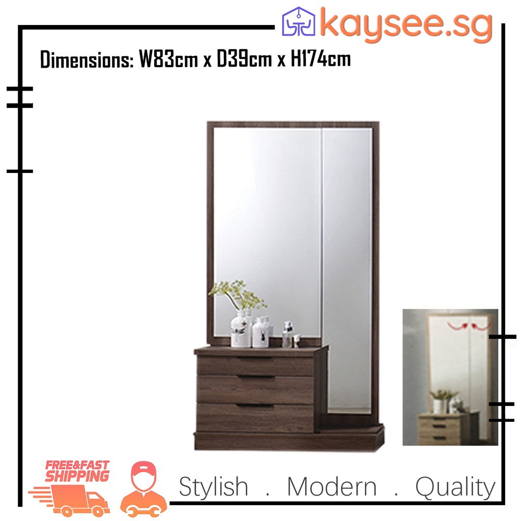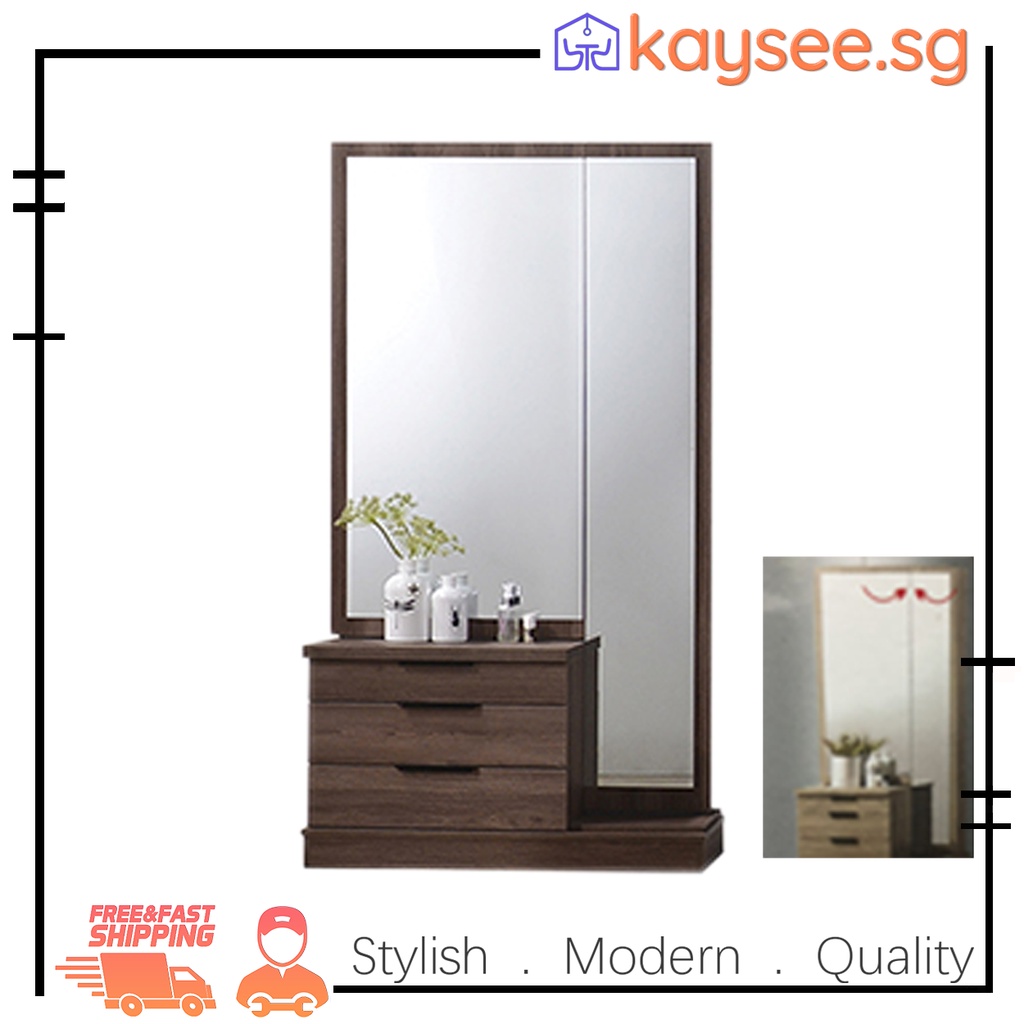 kaysee|Glenda Dressing Table with Chest of 3 Drawers and Openable Mirror Set in Coffee