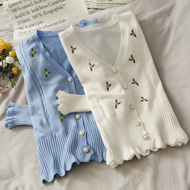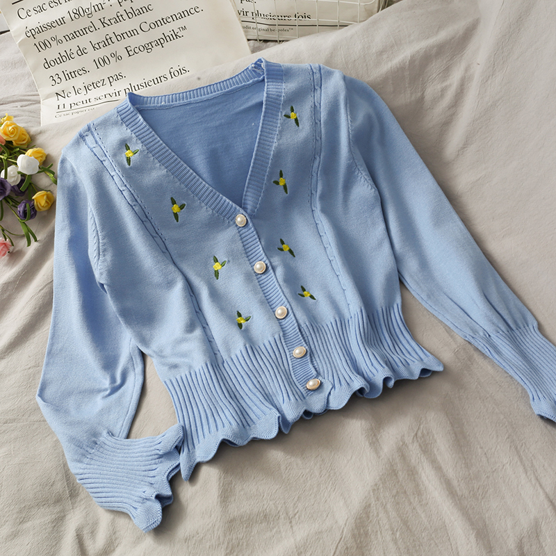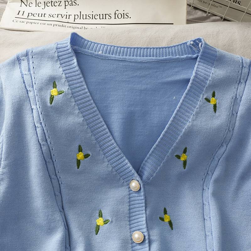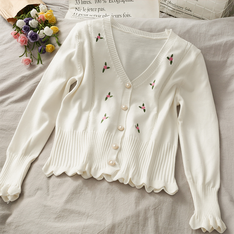 korean style women's fashion ins knitwear knitted slim V-neck cardigan sweater long sleeved
