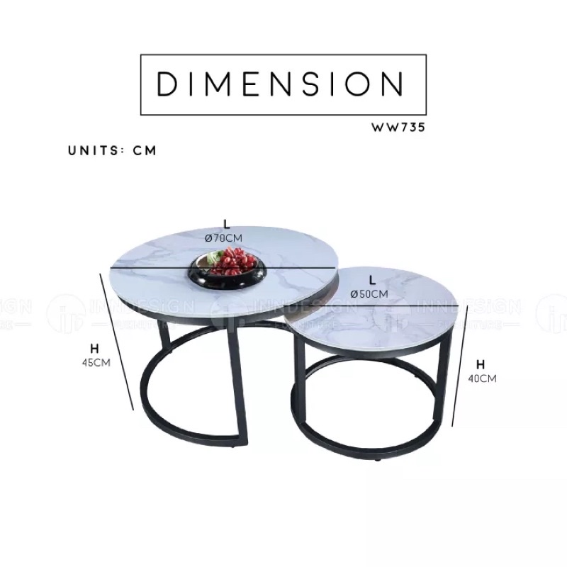 lazPickWW735 Sintered Stone Round Coffee Table With Side Table / Round Nesting Table (Free Delivery and Installation)