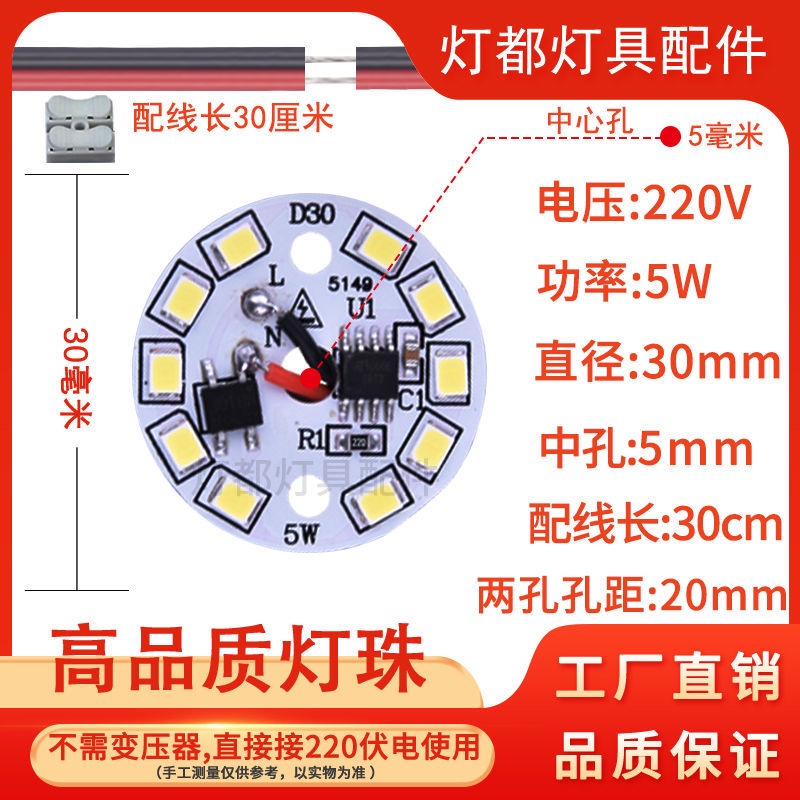 led Driver-Free Light Source 220V Ceiling Lamp Modification Board Bedroom Dining Hanging Tube Round Wick Plate