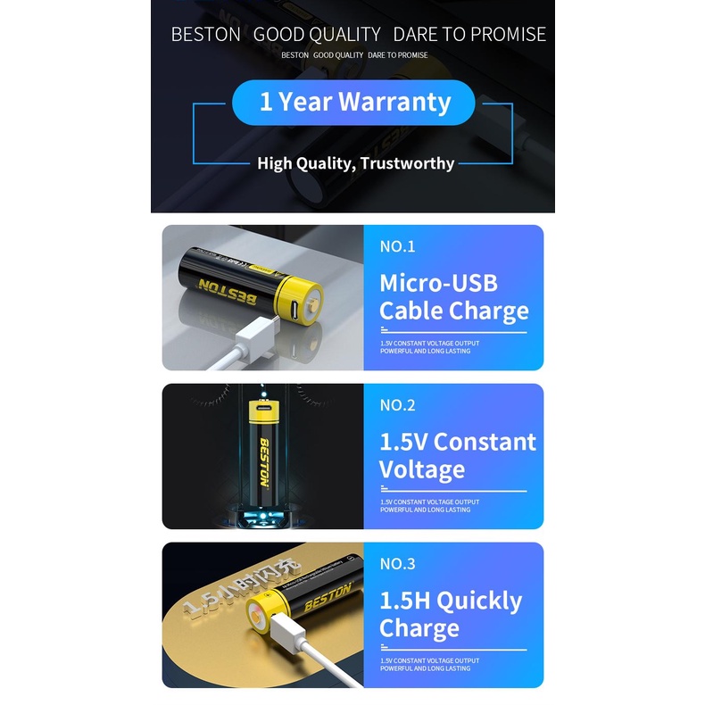 local stock 2pcs AA/AAA Battery | Rechargeable Lithium Li Ion Battery Cell with Micro USB Charging Port | Beston