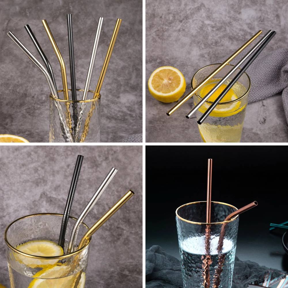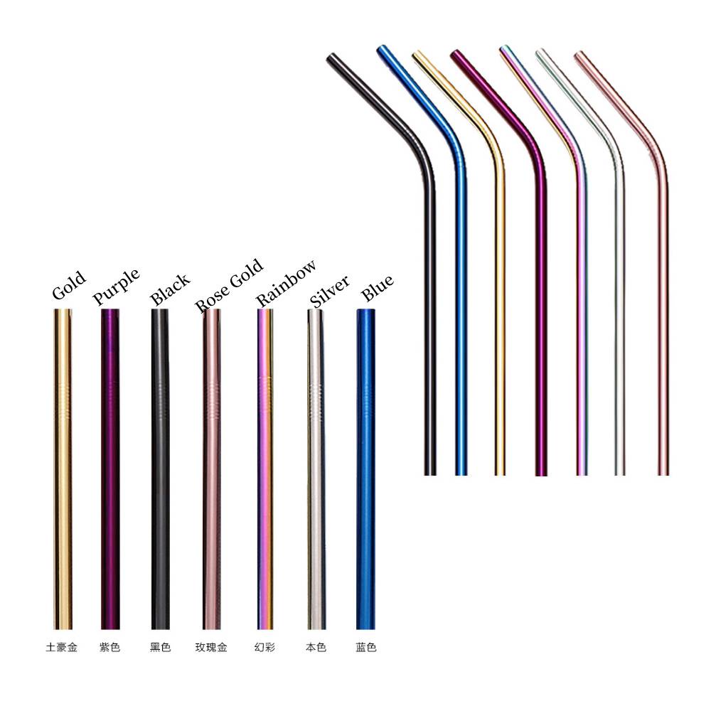 Metal Straws Reusable Straws Colorful 304 Stainless Steel Straws Reusable Straight Bent Metal Drinking Straw with Cleaner Brush Set Party Bar Accessory 1Pcs