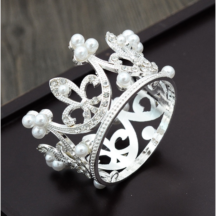 mini Crown Cake Topper Crown Decoration Princess Topper Pearl Tiara Children Hair Ornaments f Wedding Happy Birthday Party Decoration