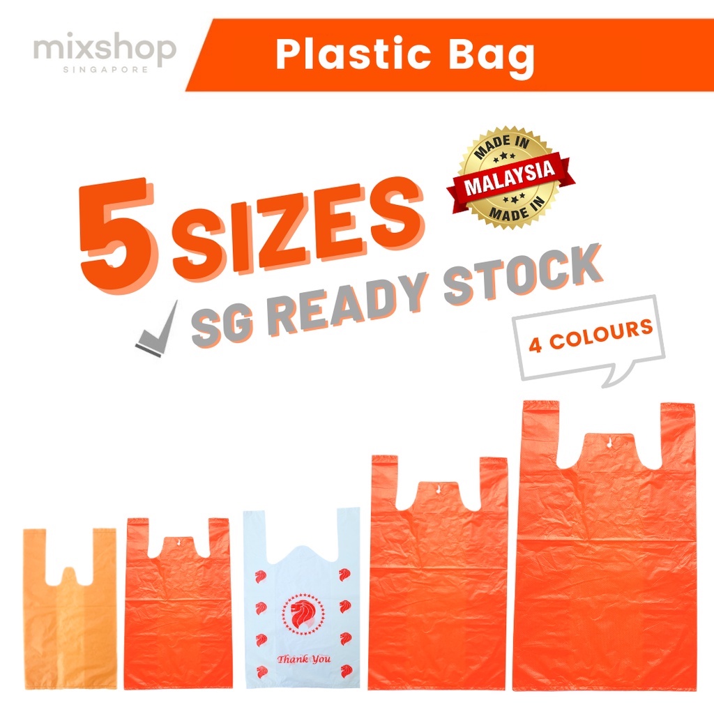 mixshop Plastic Bag, BBQ Bag, Plastics Bag, Groceries Bag, Red Plastic bag.