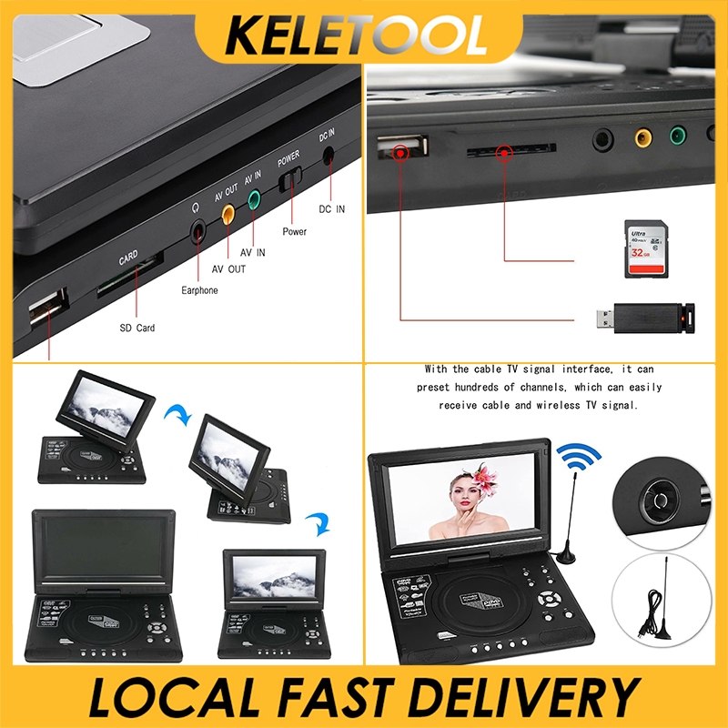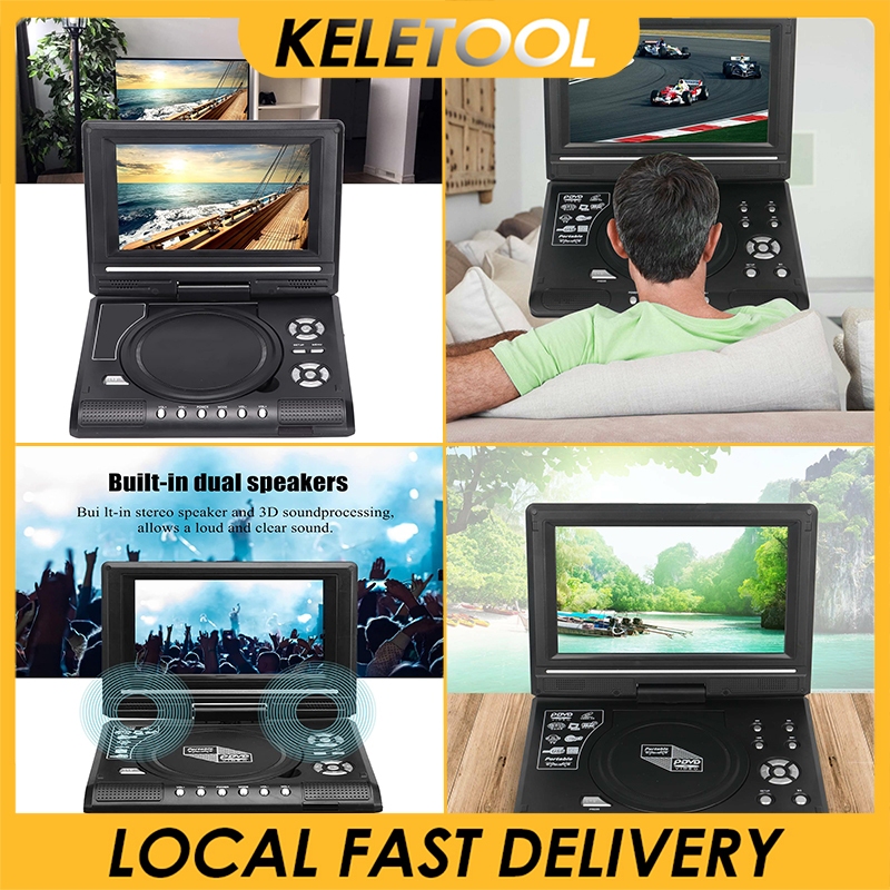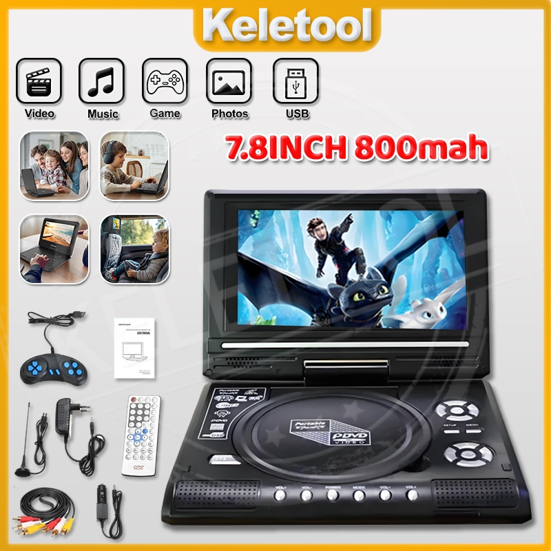 portable DVD player with screen 9.8 7.8-inch mini DVD video disc player TV radio Bluetooth speaker 270 rotation game simulation TV LCD
