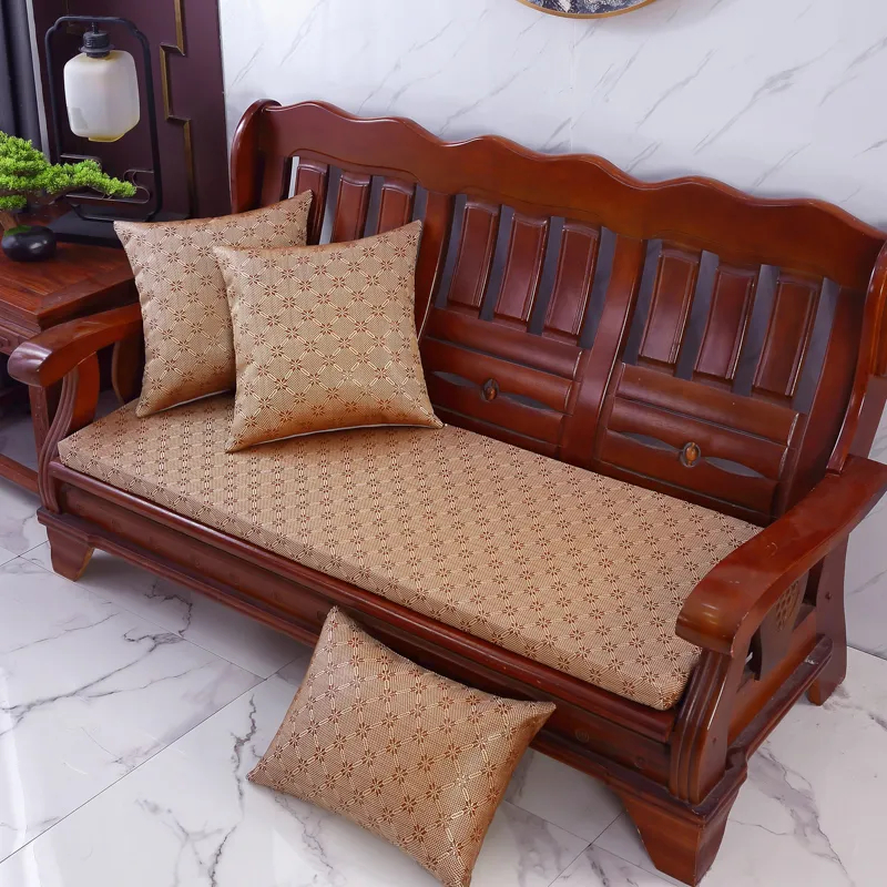 Summer Ice Rattan Cushion Mahogany Solid Wood Sofa Cushion Old-fashioned Retro Wooden Sofa Cushion Thickened Sponge Sofa Cushion