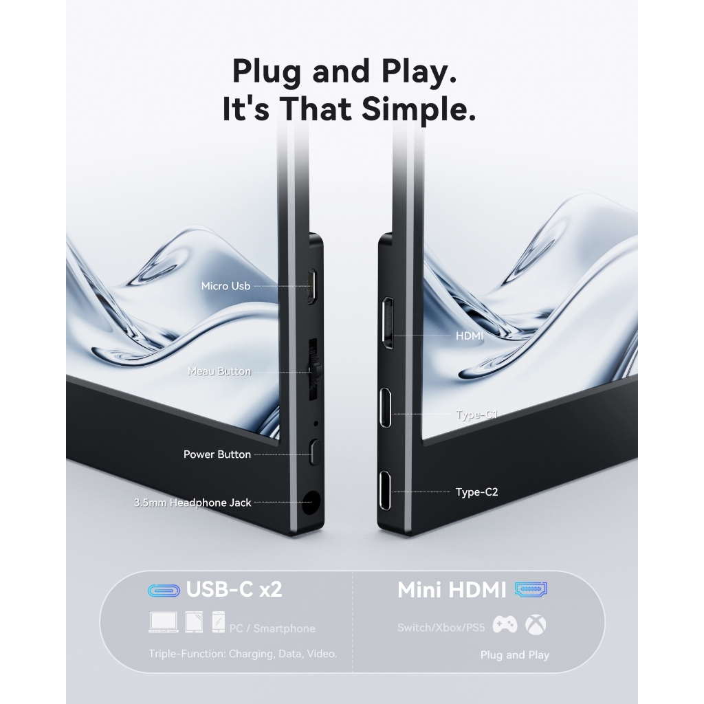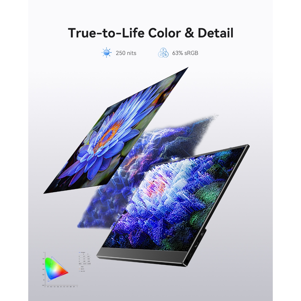 ZSCMALL 15.6" Portable Laptop Monitor with USB C HDMI - HDR Eye Careful Gaming Monitor,FHD IPS/HDR Computer Screen Extender with Built-in Speakers -Compatible with Laptop PC Phone