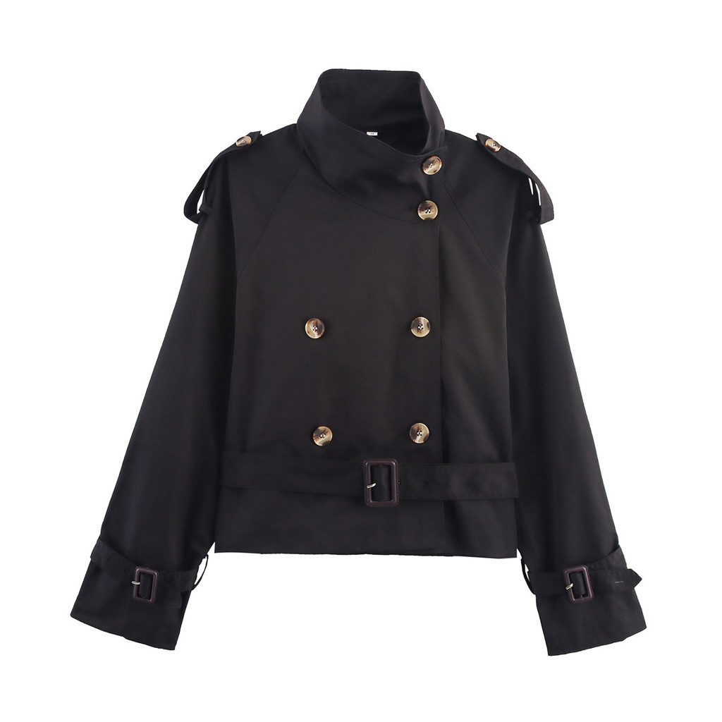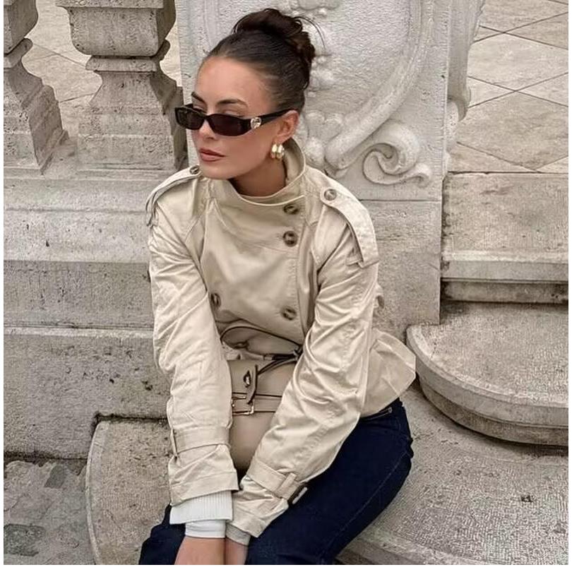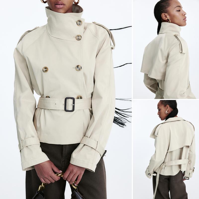 ZA Spring Summer Funnel Collar with Belt Twill Short Windbreaker1264870