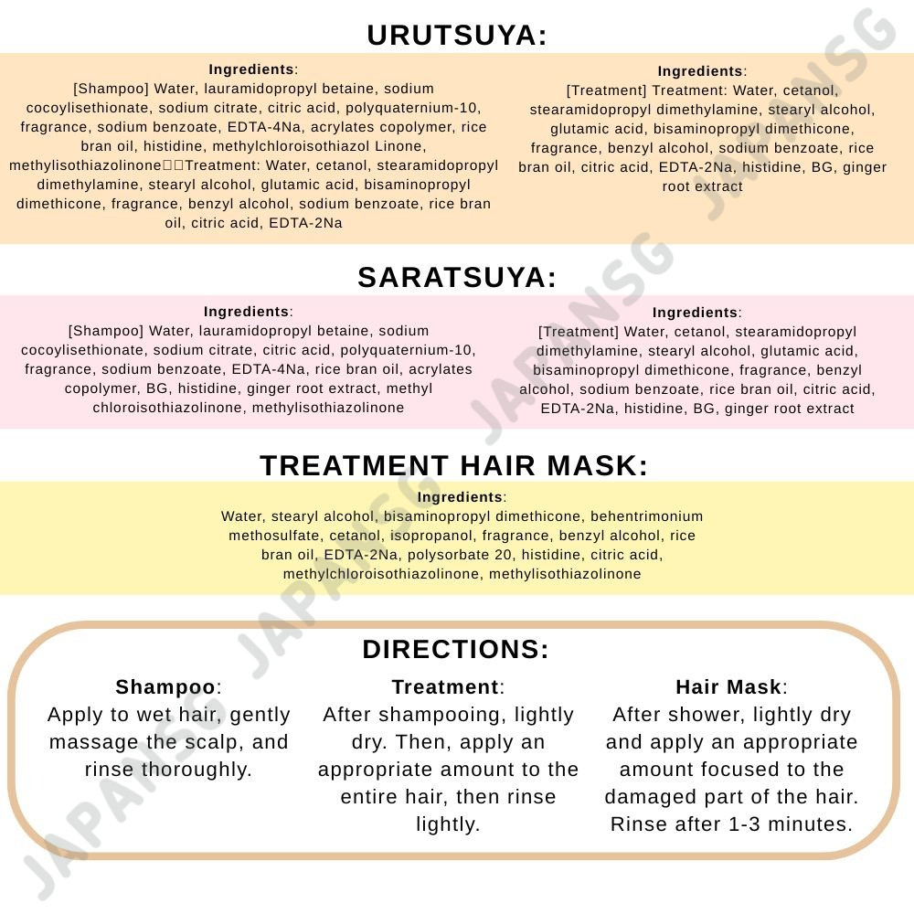 P&G Wanomi by Hair Recipe - Urutsuya/ Saratsuya Shampoo/ Treatment/ Rice Bran Oil/ Hair Mask