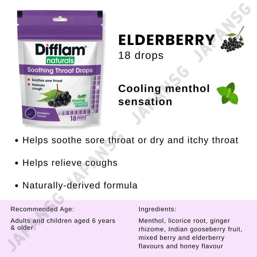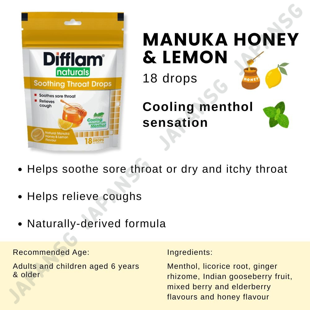 Difflam Naturals Soothing Throat Drops Manuka Honey & Lemon/ Elderberry 18 drops