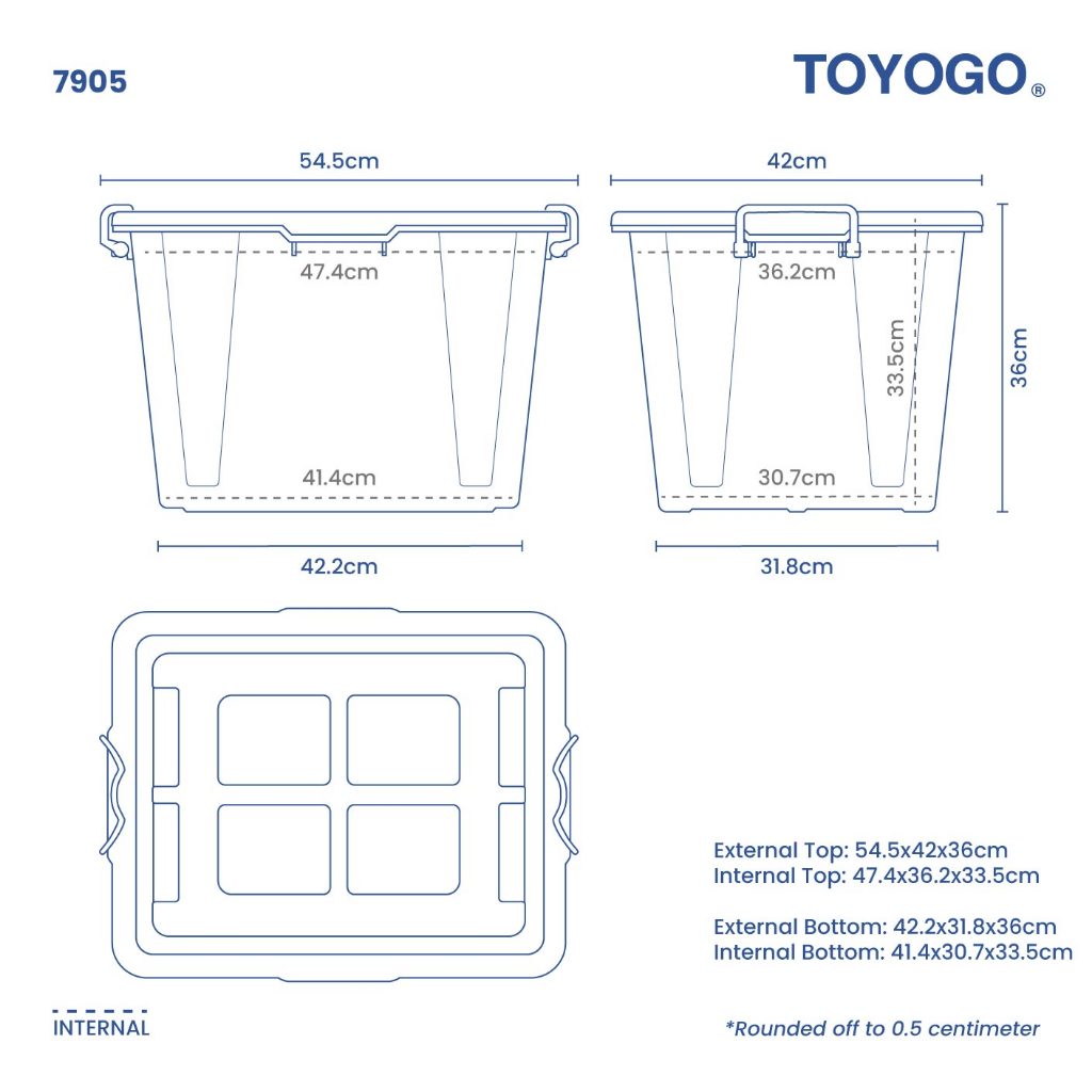 TOYOGO Storage Box 56L W/ Lid – Heavy Duty Plastic Container for Home & Office (7905)