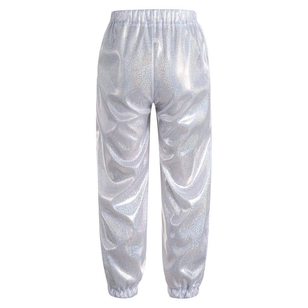 YOOJIA Child Pull-On Unisex Dance Pant Metallic Color Shiny Stretch Trousers