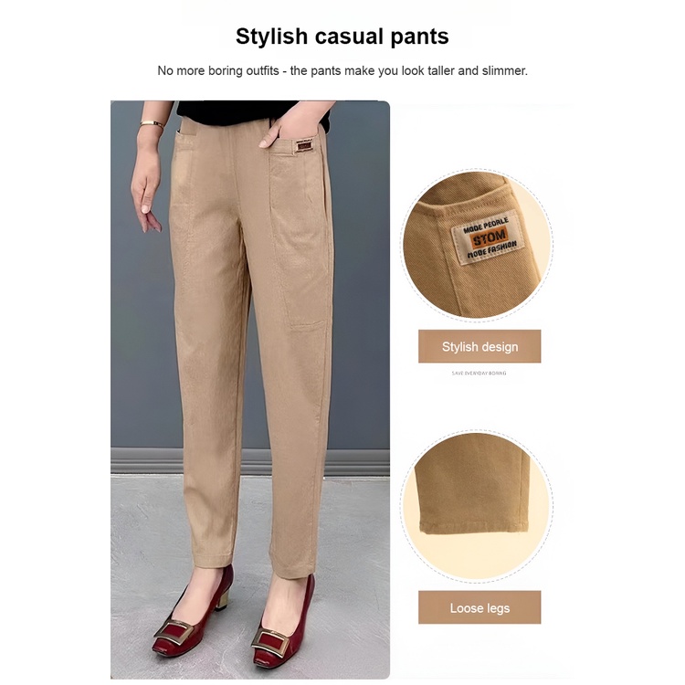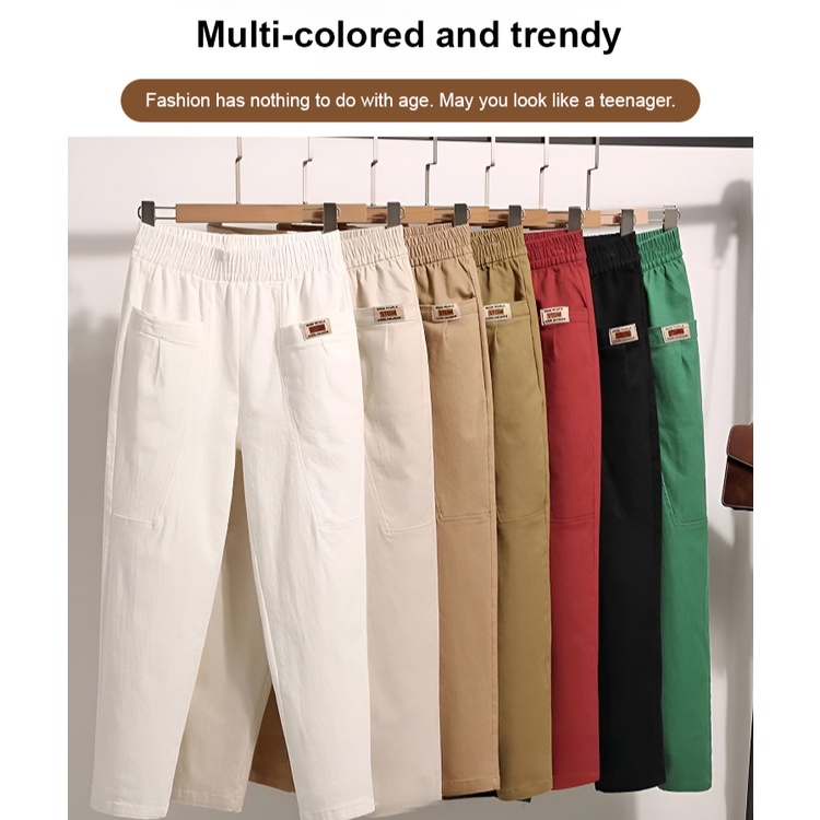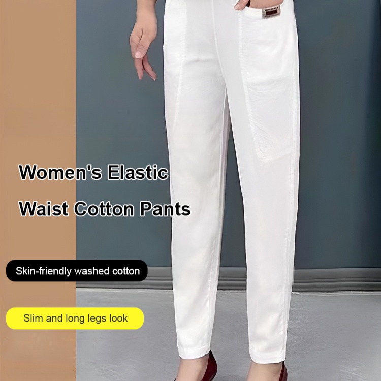 ⚡SG Hot Sale⚡【washed cotton casual pants/slimming elastic waist】Women's Elastic Waist Cotton Plus Size Pants/harem pants/cotton and linen pants