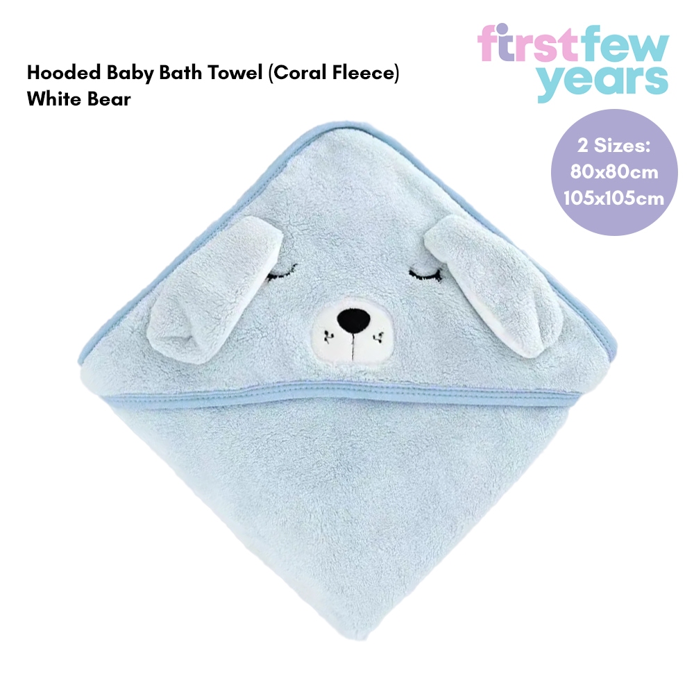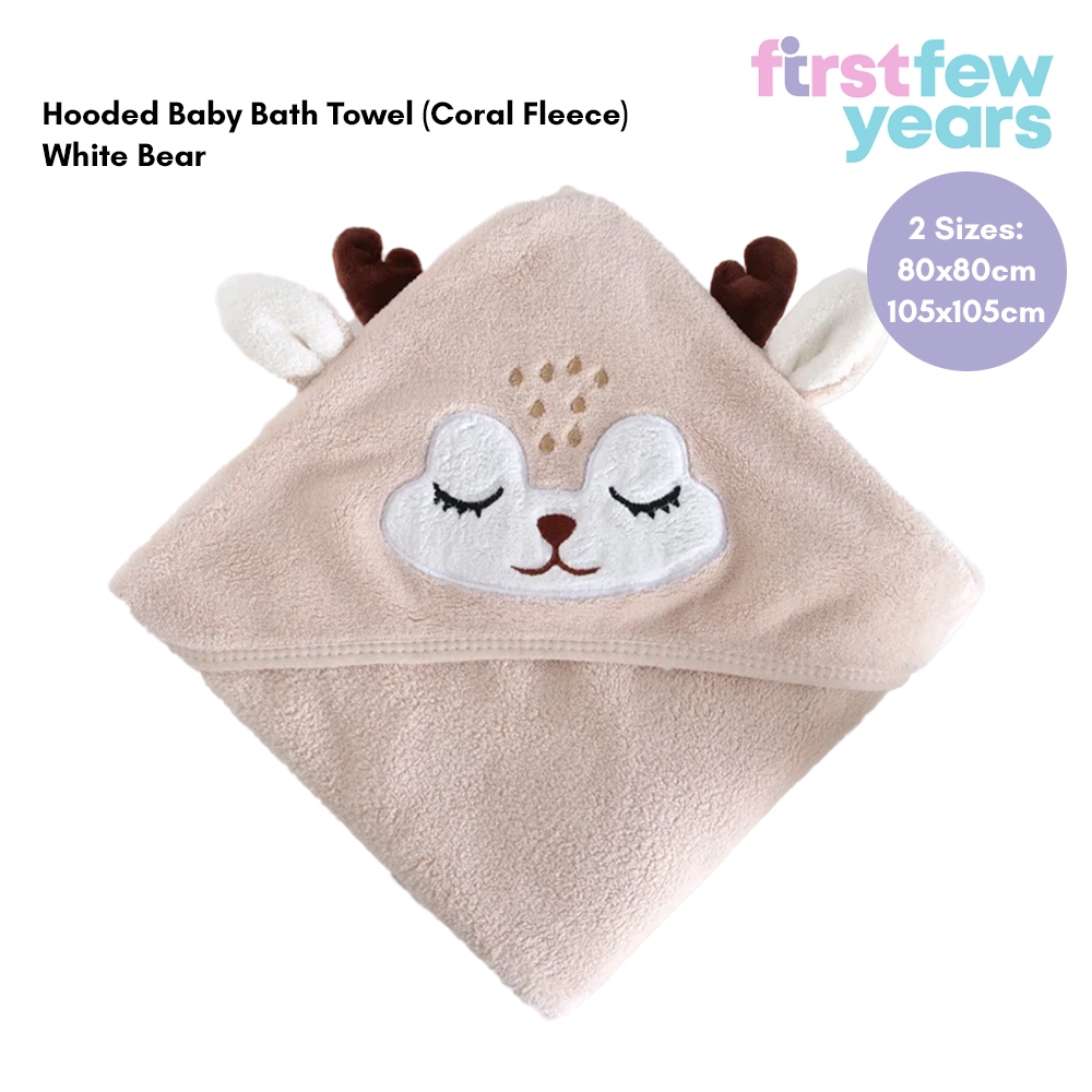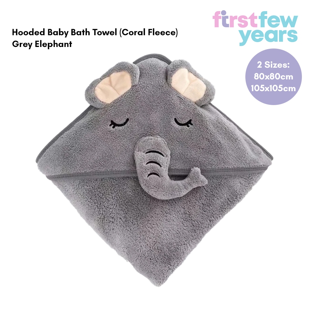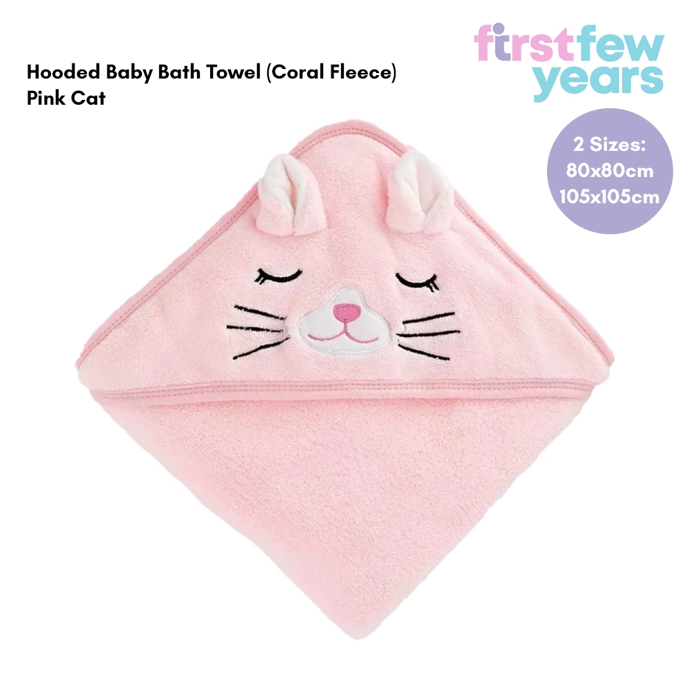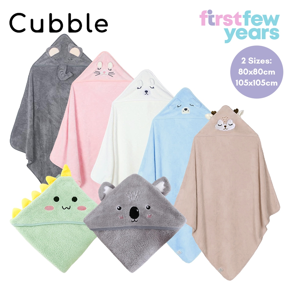 Cubble Hooded Baby Bath Towel (7 Colors, 2 Sizes: 80x80cm / 105x105cm) Cute Animal Design Absorbent Premium Coral Fleece