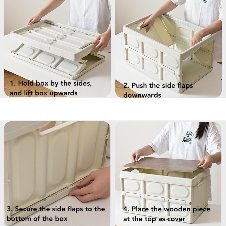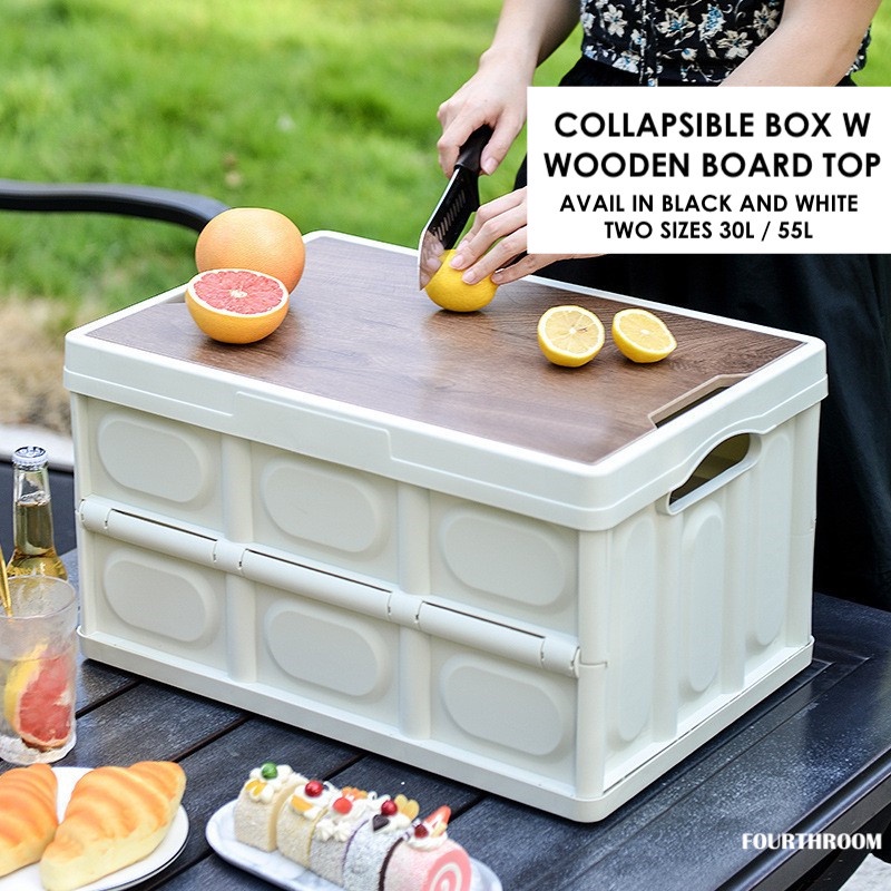 FOURTHROOM | Collapsible Foldable Easy Open Storage Box w Wood Top 30L / 55L (Two colours)