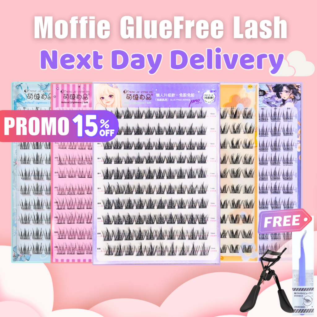 Moffie【SG OFFICIAL】Glue-Free False Eyelash, Self Adhesive Eyelash Lash, Magnetic Eyelash, NO Glue Lash