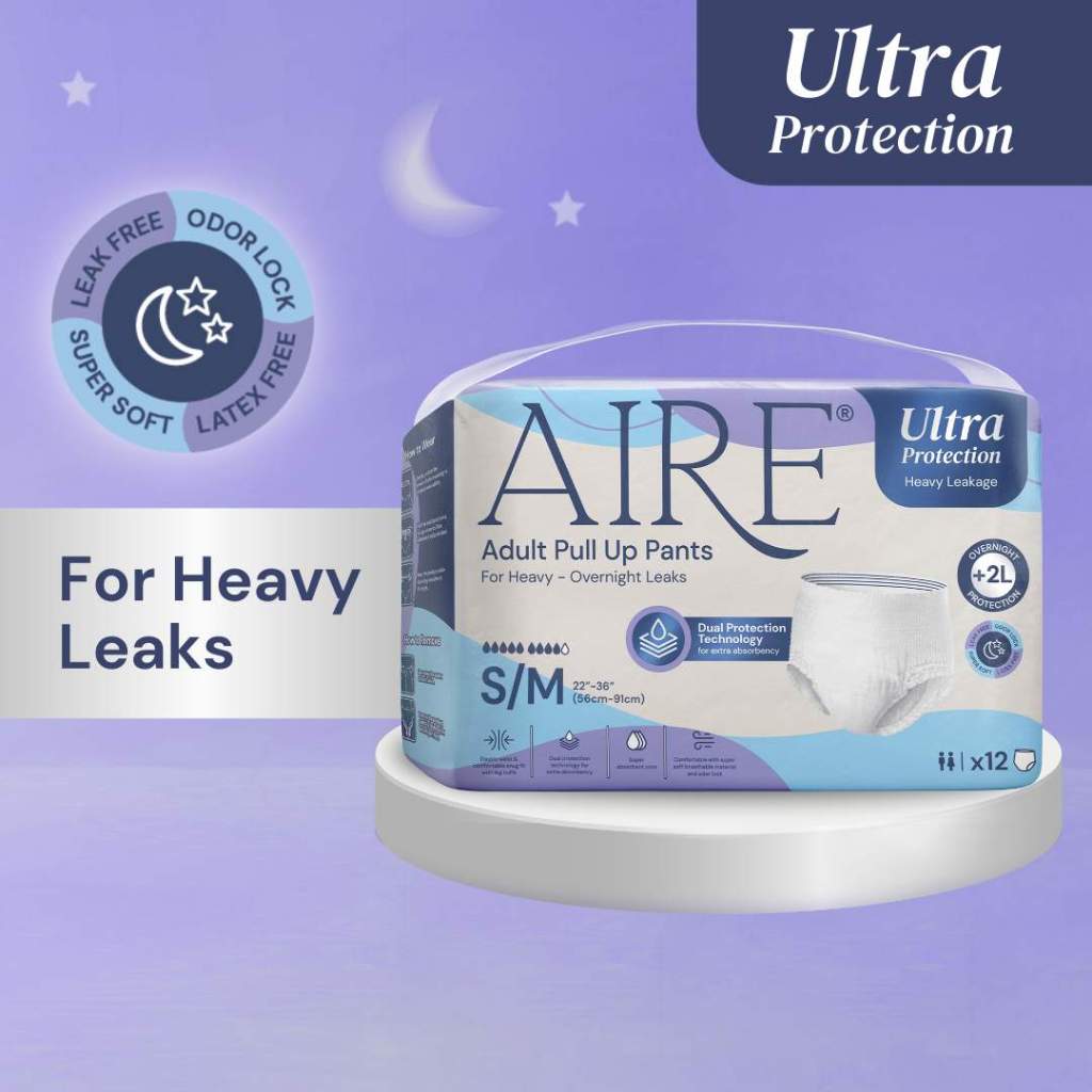Aire Ultra Protection Adult Diaper Pull Up Pants - Size S/M (1X12 pcs)(2L Overnight- Heavy Leak Protection, Super Soft)
