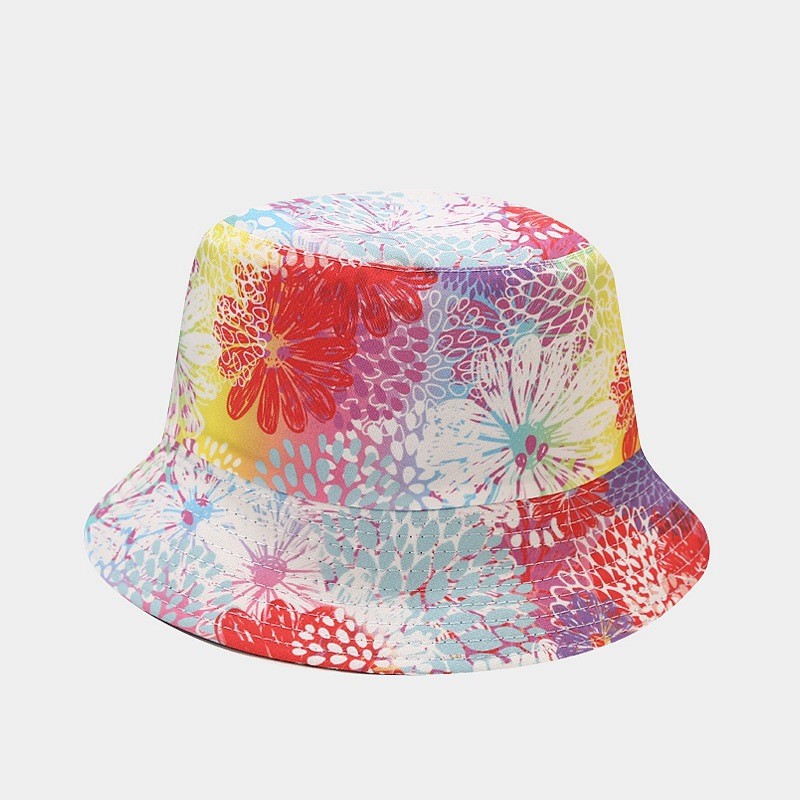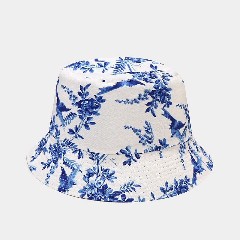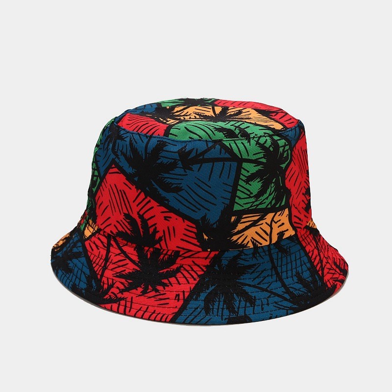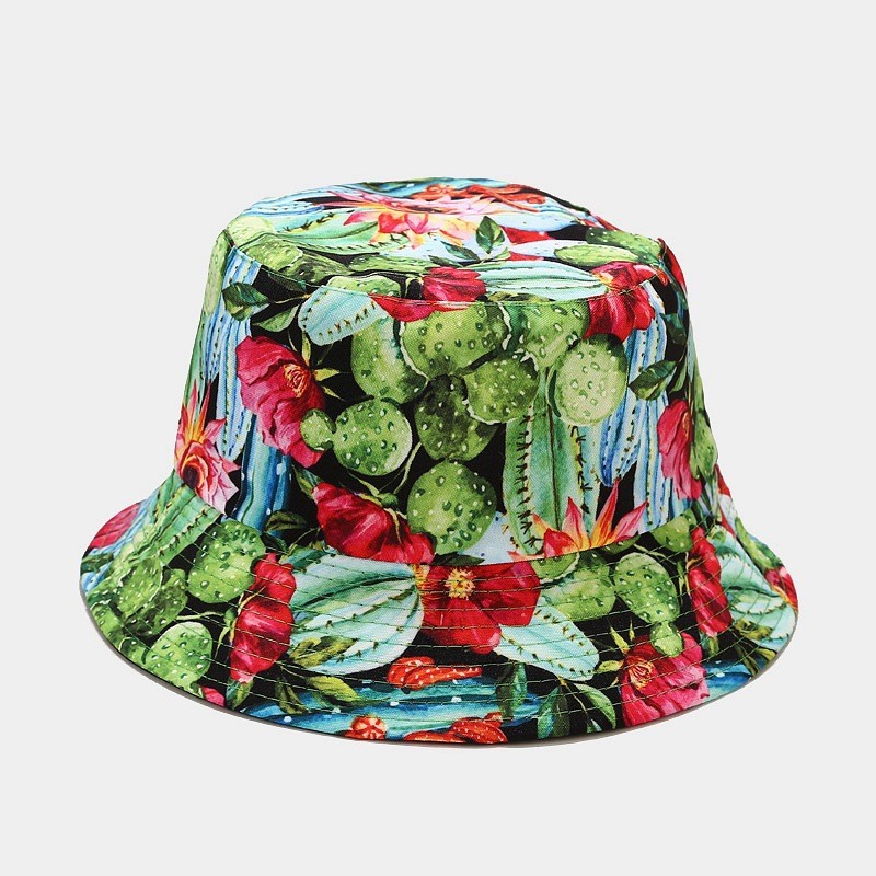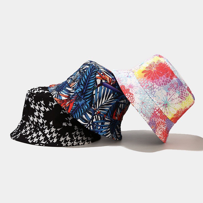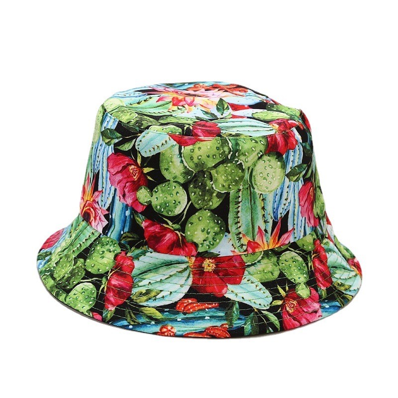 Bucket Hat Fashion Print Fisherman Hats Double Sides Flat Top Women Reversible Outdoor Sun Hat