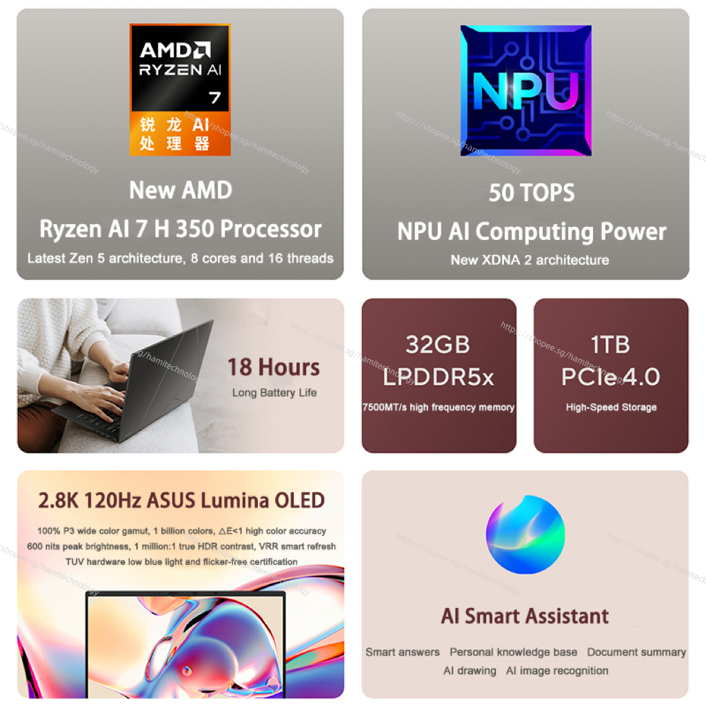 ASUS Zenbook 14 2025 Ryzen AI 7 H 350 14 inch 2.8K 120Hz OLED AI Ultra-thin Laptop ASUS Laptops For Home 华硕灵耀14 2025