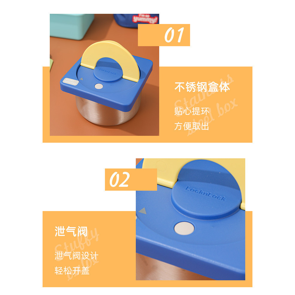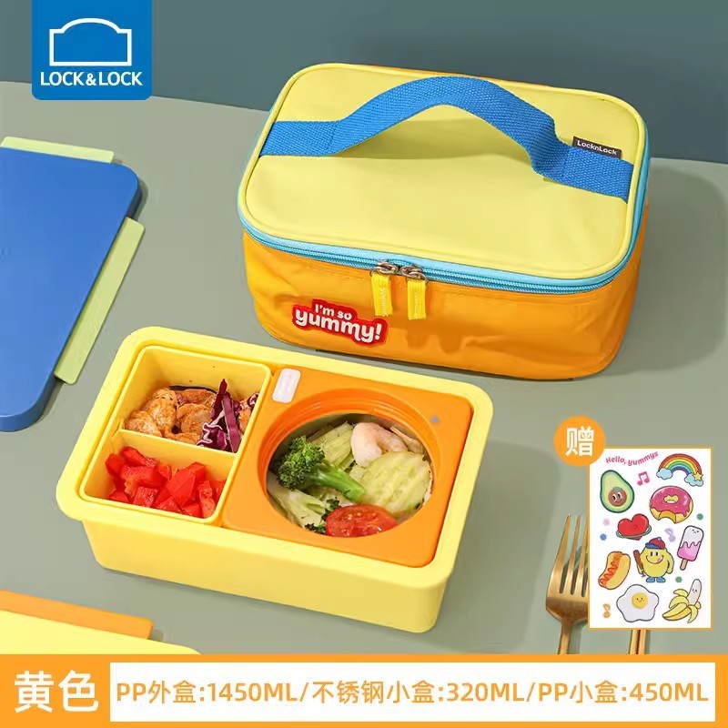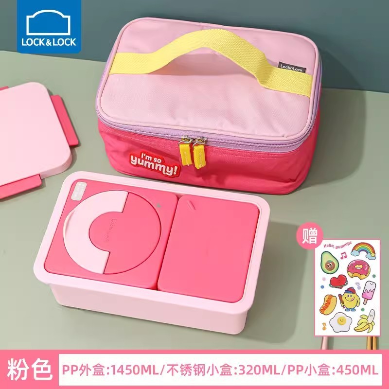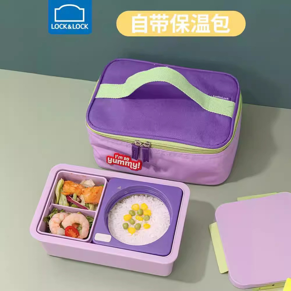 Lock&Lock Stainless Steel Insulated Lunch Box Thermal Bag Set Grid Insulation Lunch Box Student Handheld Lunch Box Portable Picnic Lunch Box Stainless Steel Fresh-Keeping Bento Box