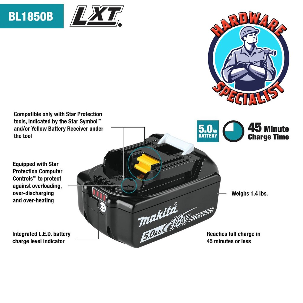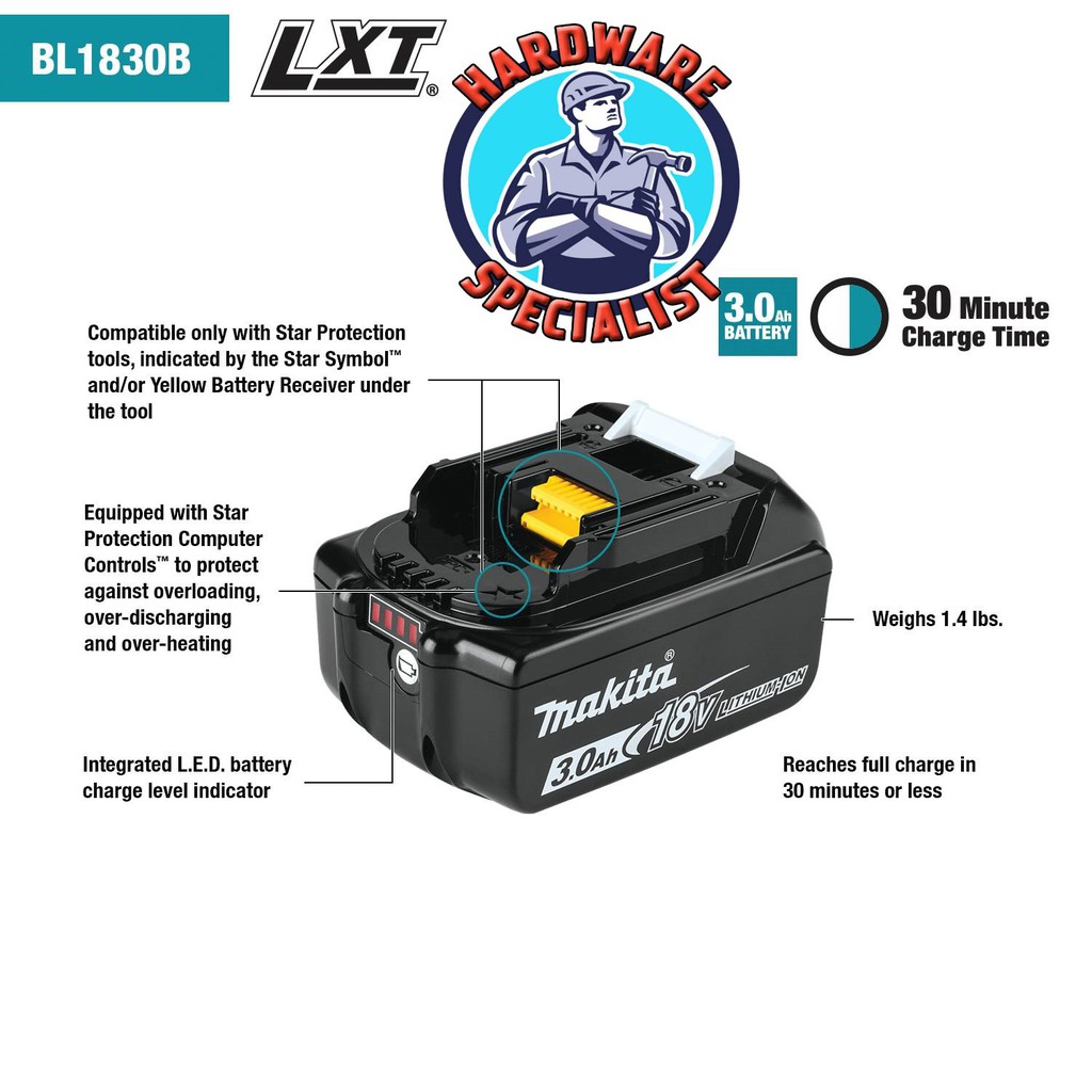 Makita BL1830B BL1850B 18V LXT® Lithium‑Ion 3.0Ah / 5.0Ah Battery